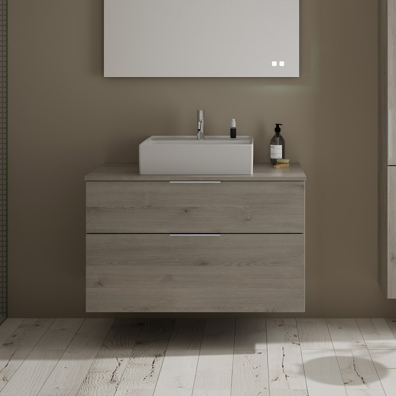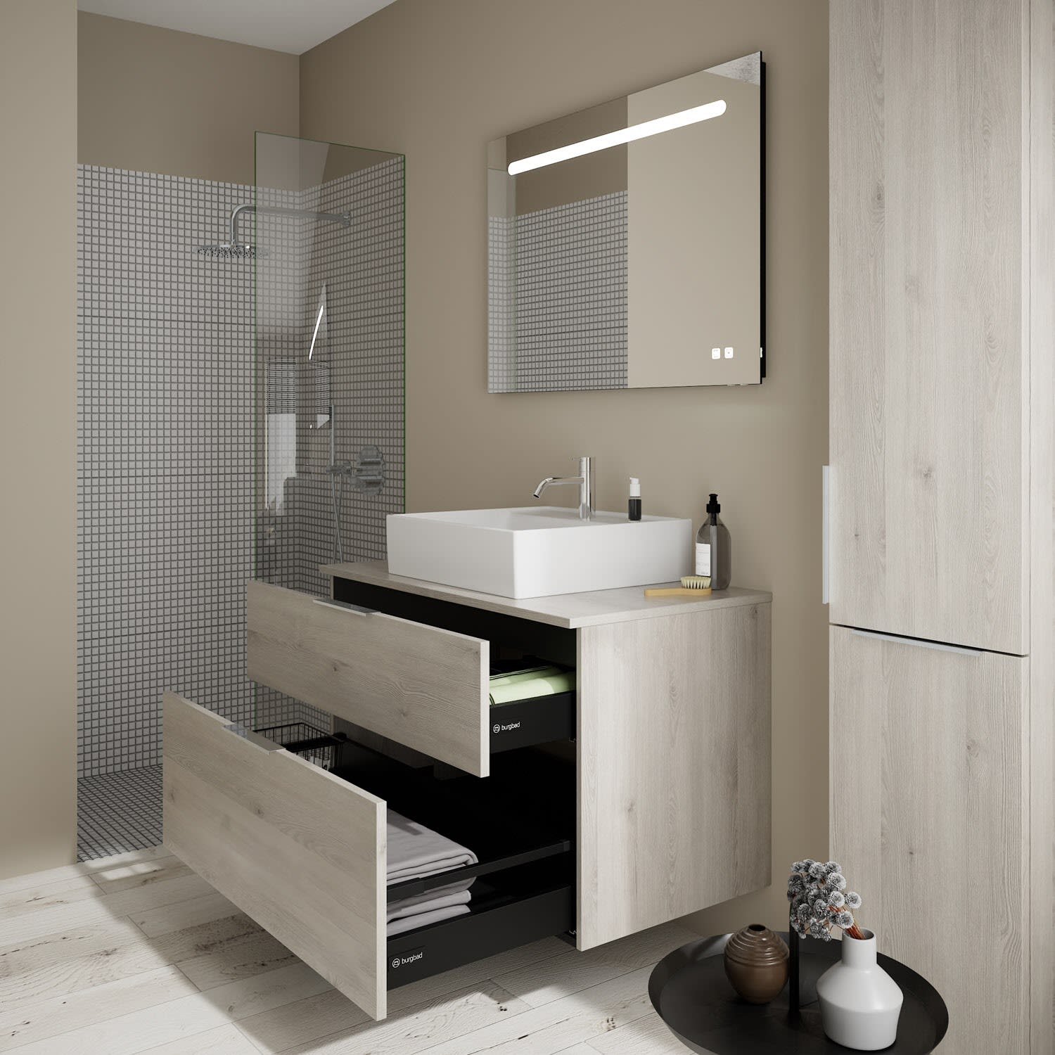 burgbad Eqio Waschtischkombination mit Keramik-Aufsatzwaschtisch 100 cm, mit Griff G0146