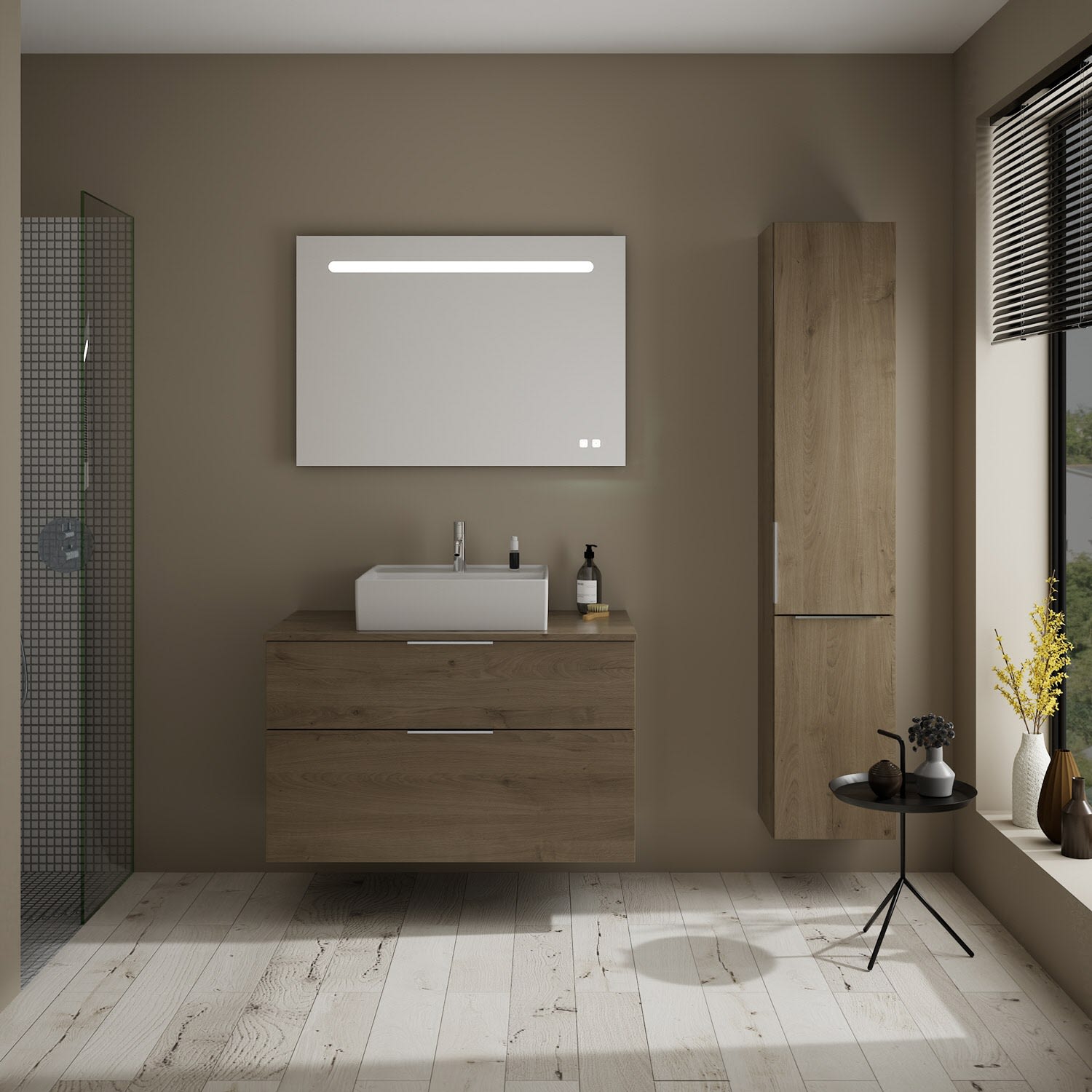 burgbad Eqio Waschtischkombination mit Keramik-Aufsatzwaschtisch 100 cm, mit Griff G0146