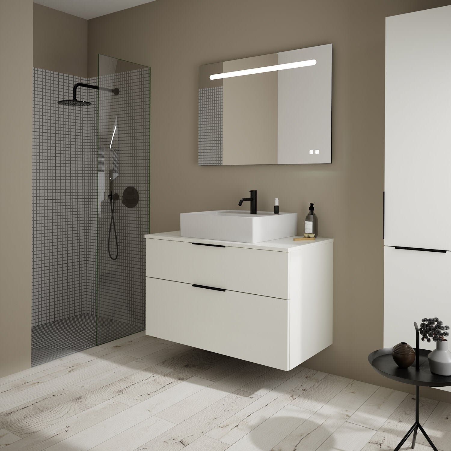burgbad Eqio Waschtischkombination mit Keramik-Aufsatzwaschtisch 100 cm, mit Griff G0200