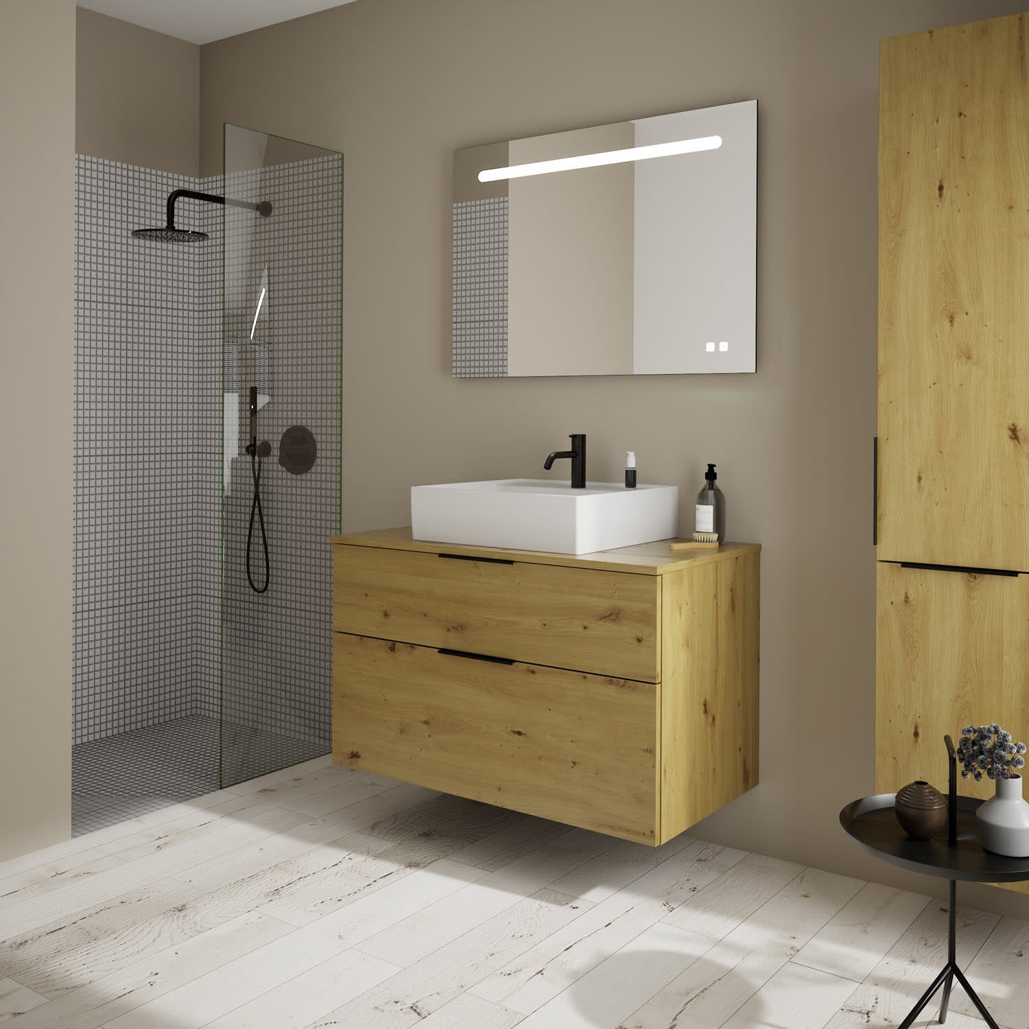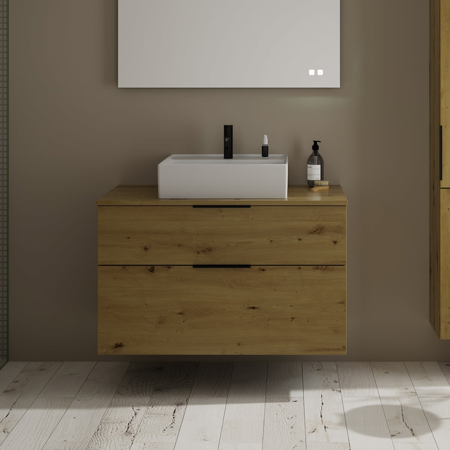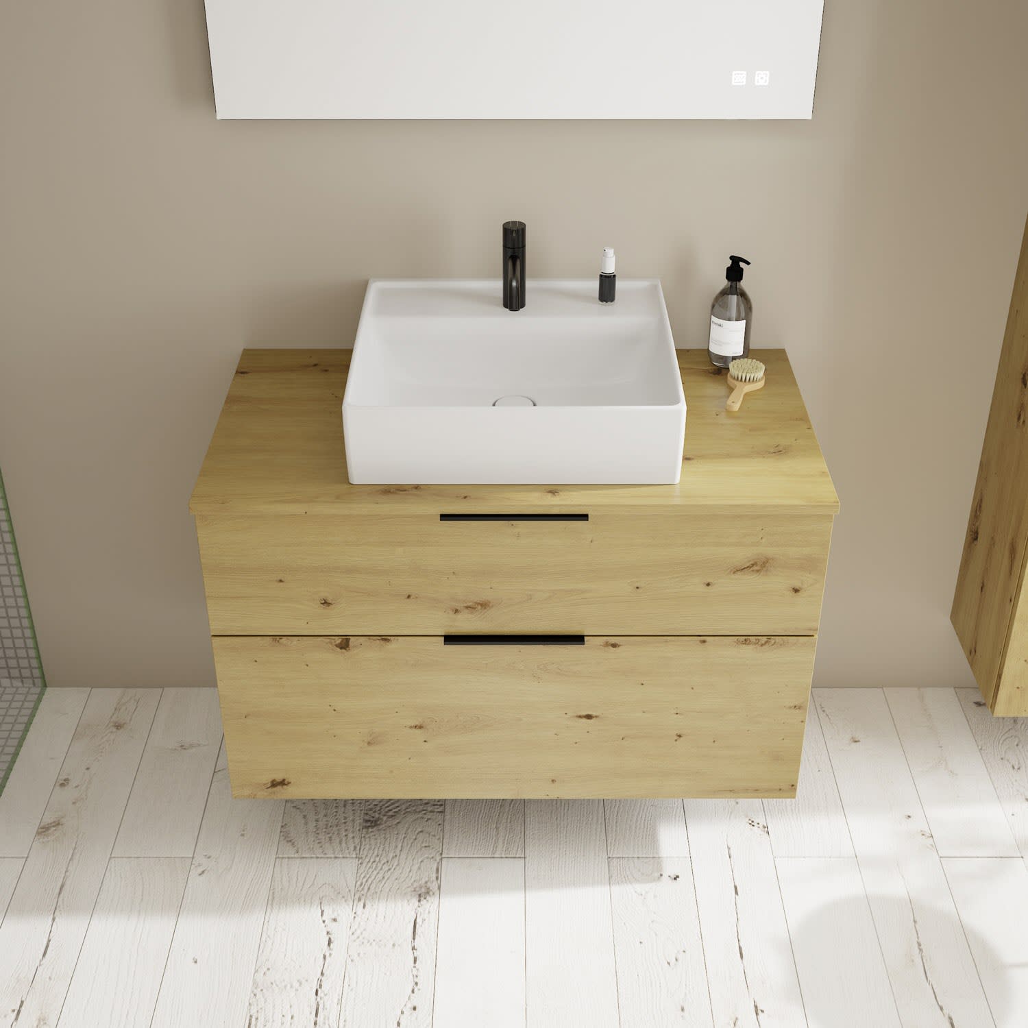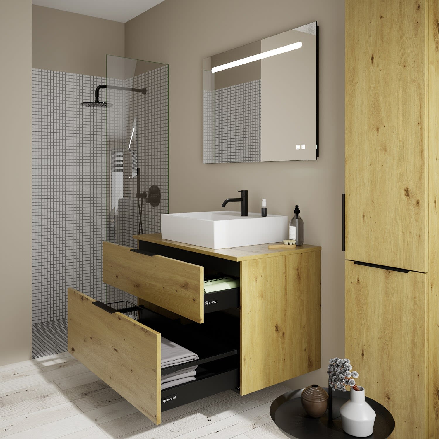 burgbad Eqio Waschtischkombination mit Keramik-Aufsatzwaschtisch 100 cm, mit Griff G0200