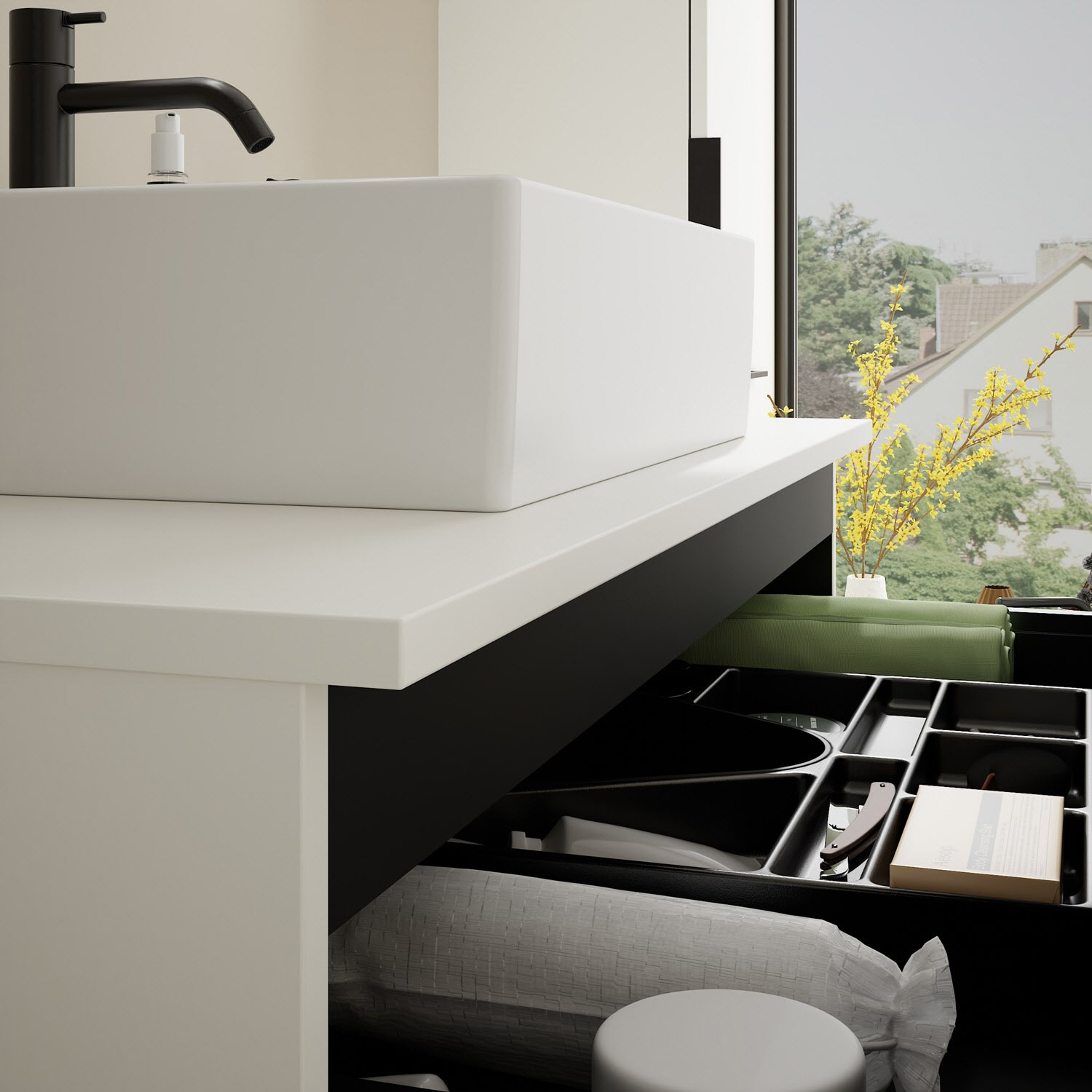 burgbad Eqio Waschtischkombination mit Keramik-Aufsatzwaschtisch 100 cm, mit Griff G0200