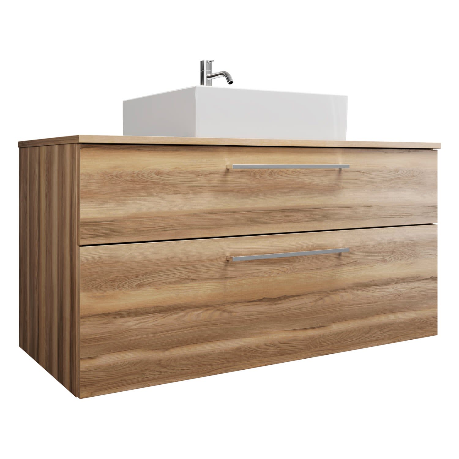 burgbad Eqio Waschtischkombination mit Keramik-Aufsatzwaschtisch 120 cm, mit Stangengriff P95