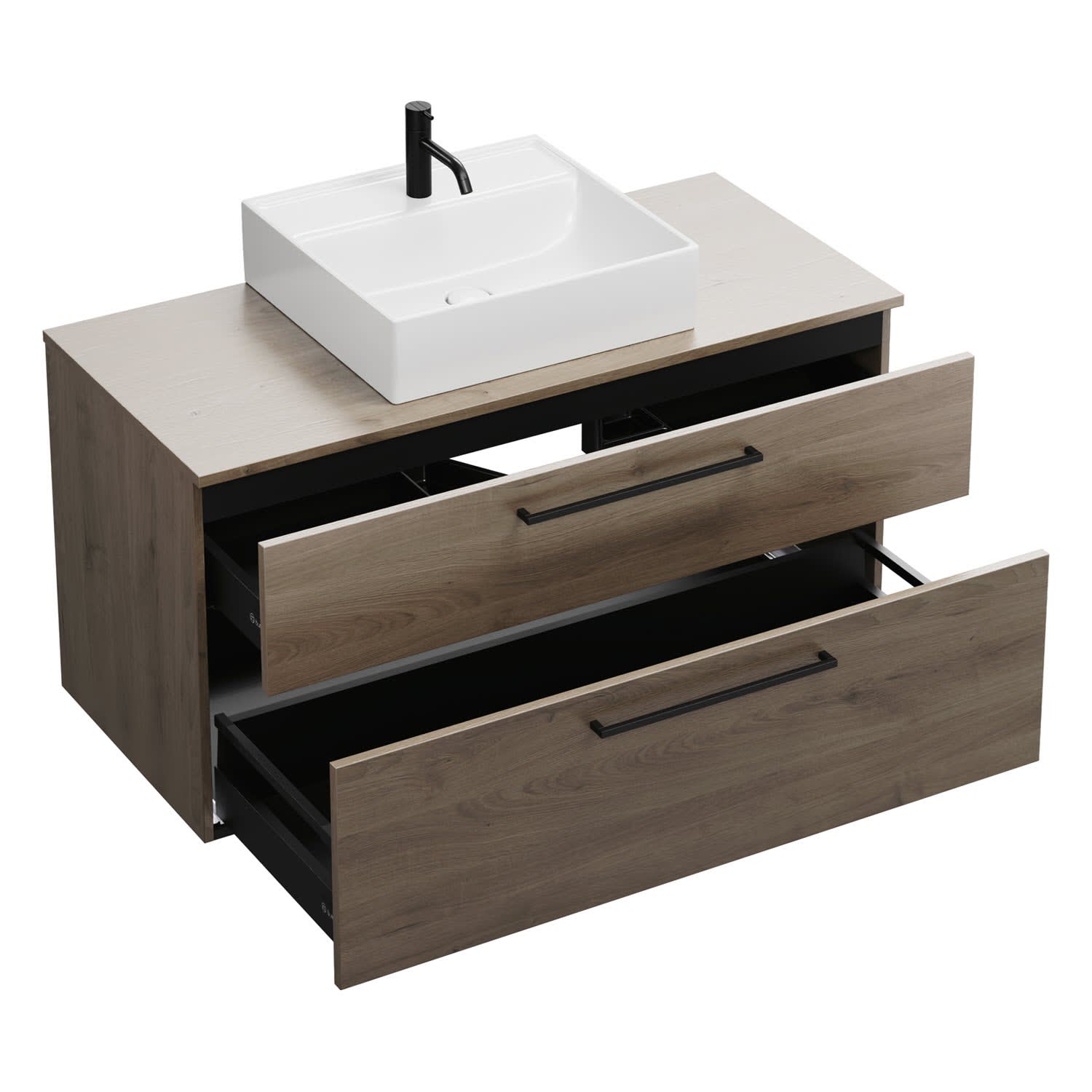 burgbad Eqio Waschtischkombination mit Keramik-Aufsatzwaschtisch 120 cm, mit Stangengriff G0234