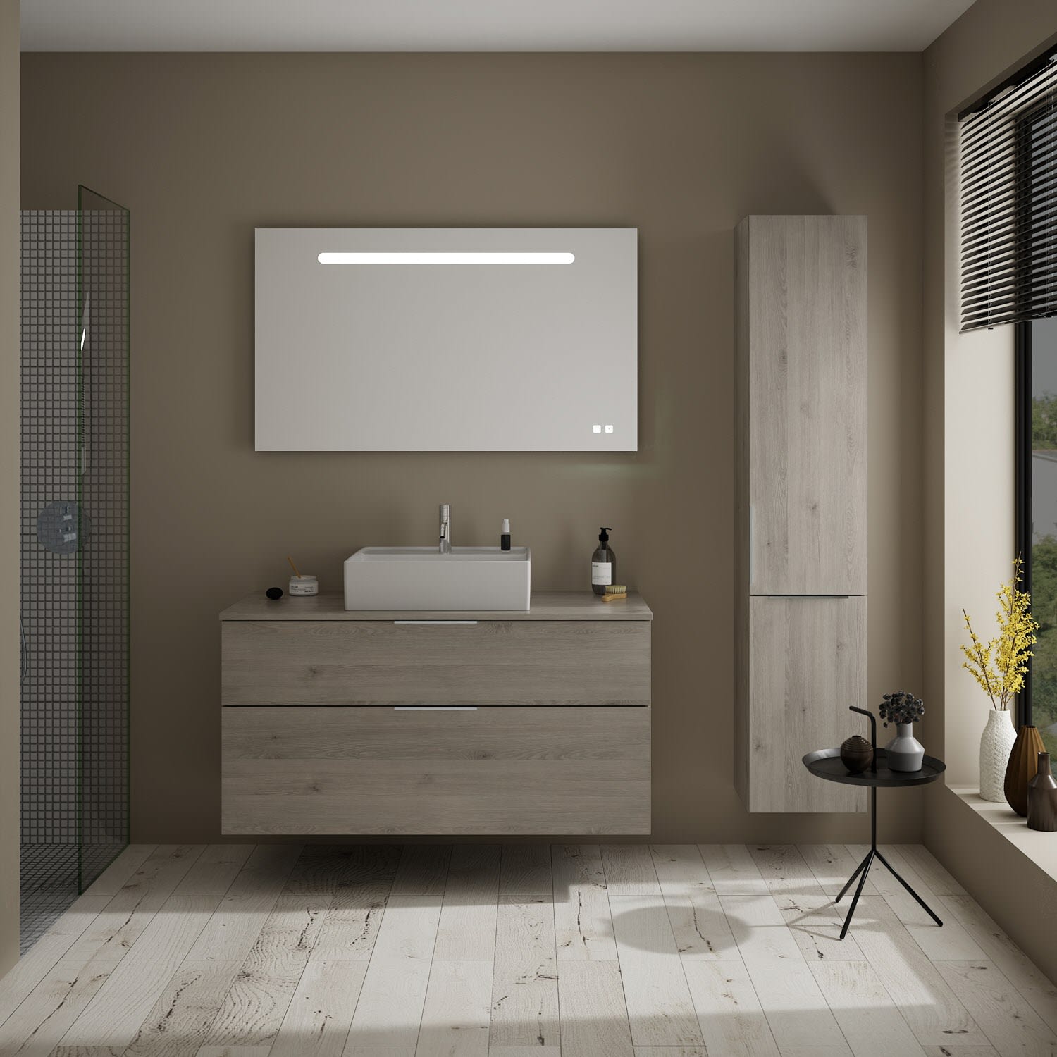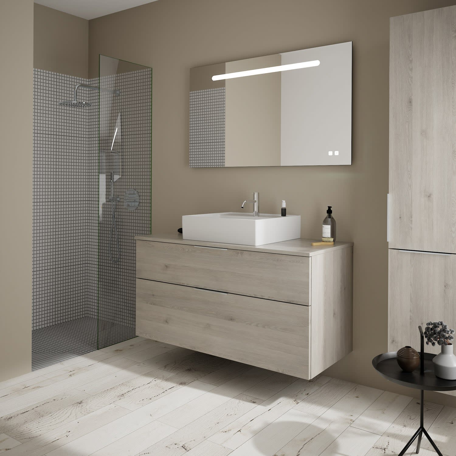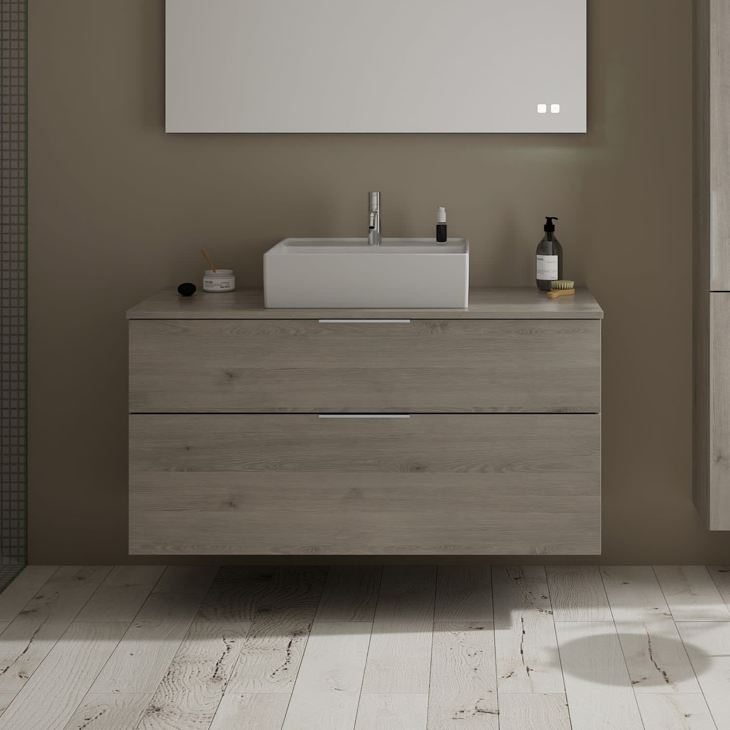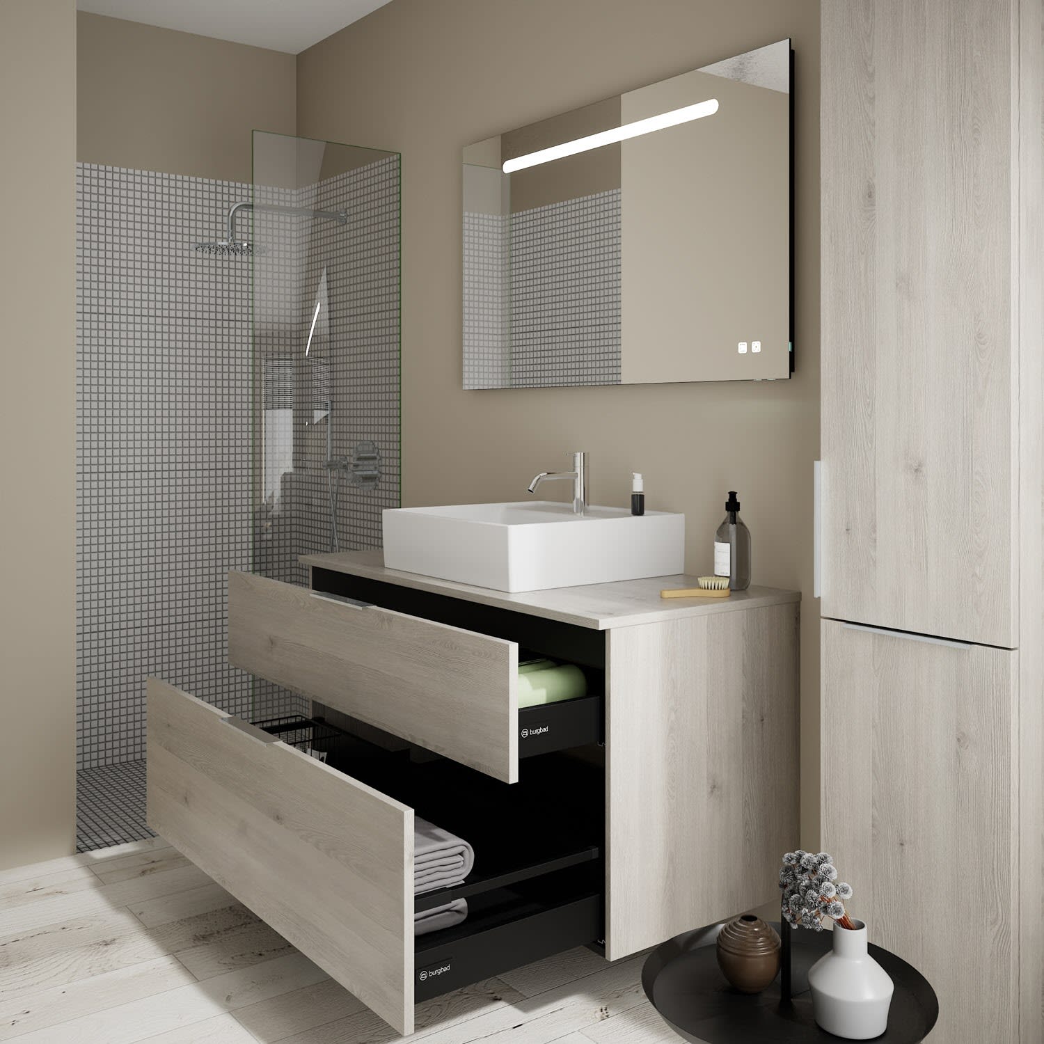 burgbad Eqio Waschtischkombination mit Keramik-Aufsatzwaschtisch 120 cm, mit Griff G0146