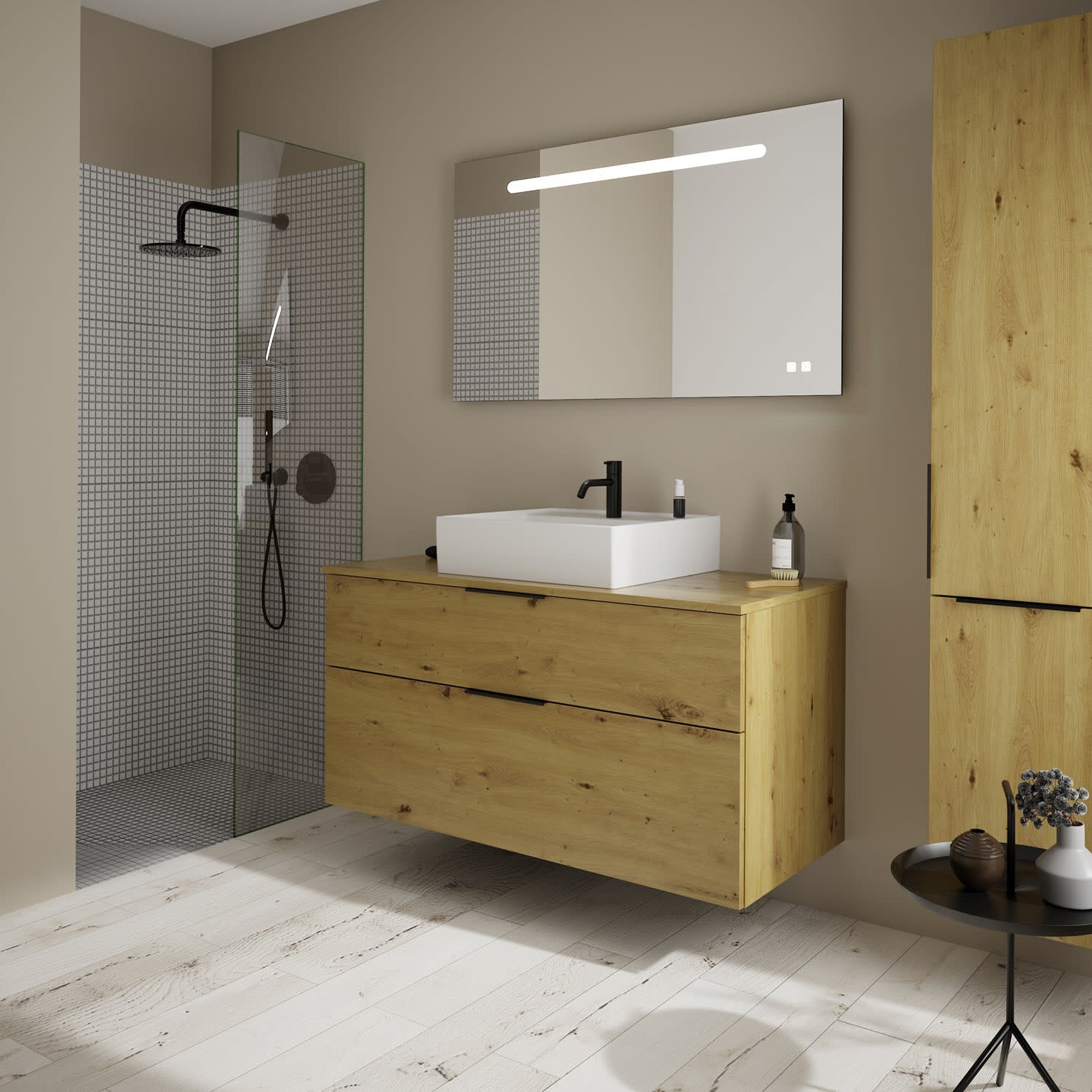burgbad Eqio Waschtischkombination mit Keramik-Aufsatzwaschtisch 120 cm, mit Griff G0200