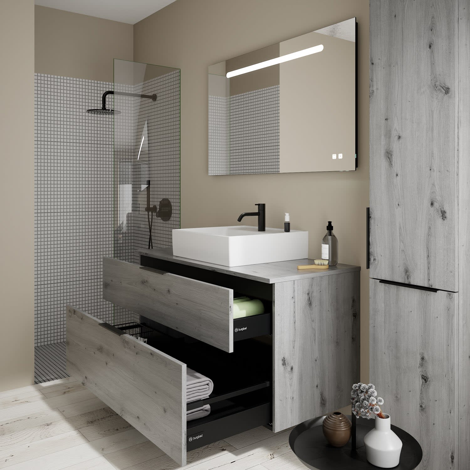 burgbad Eqio Waschtischkombination mit Keramik-Aufsatzwaschtisch 120 cm, mit Griff G0200
