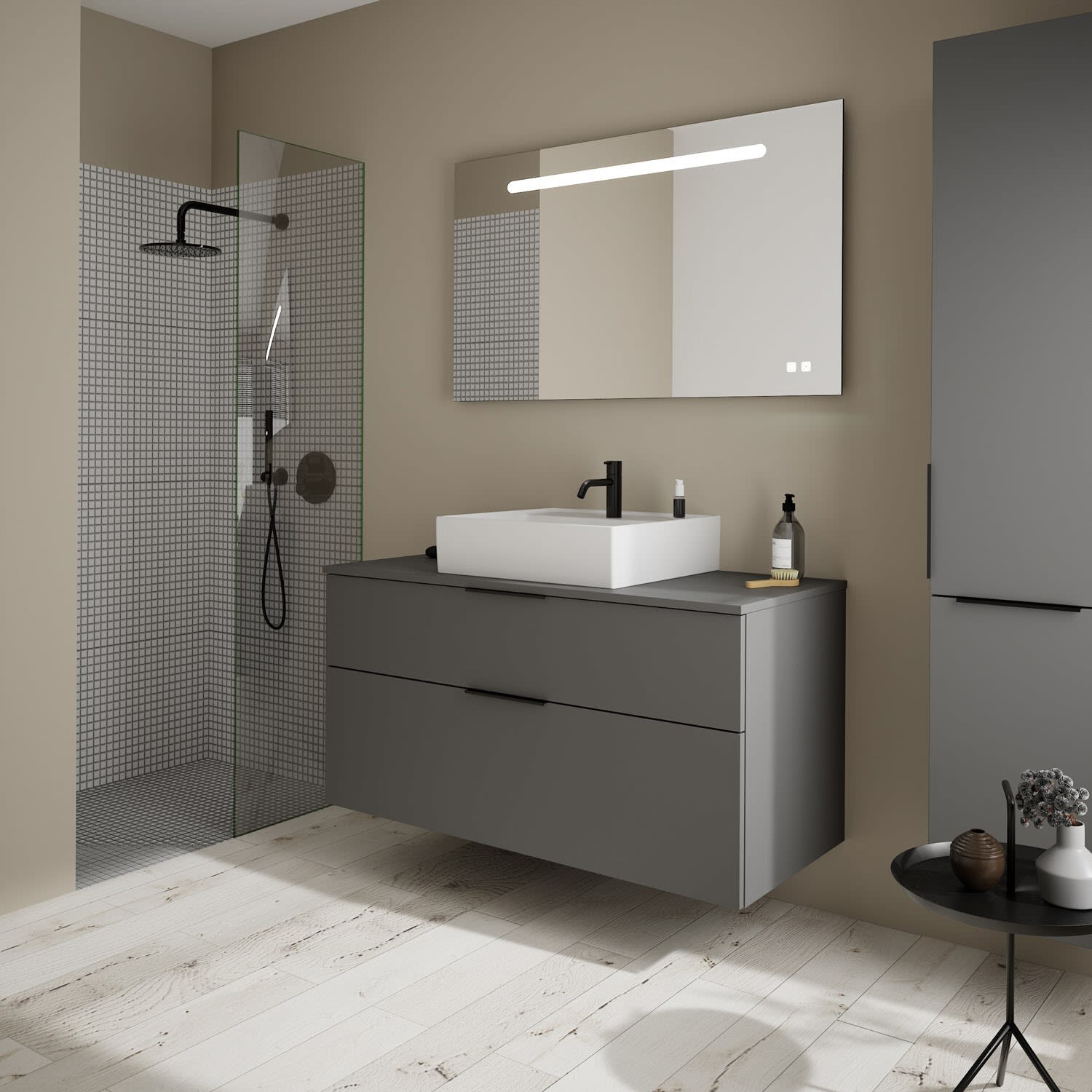 burgbad Eqio Waschtischkombination mit Keramik-Aufsatzwaschtisch 120 cm, mit Griff G0200
