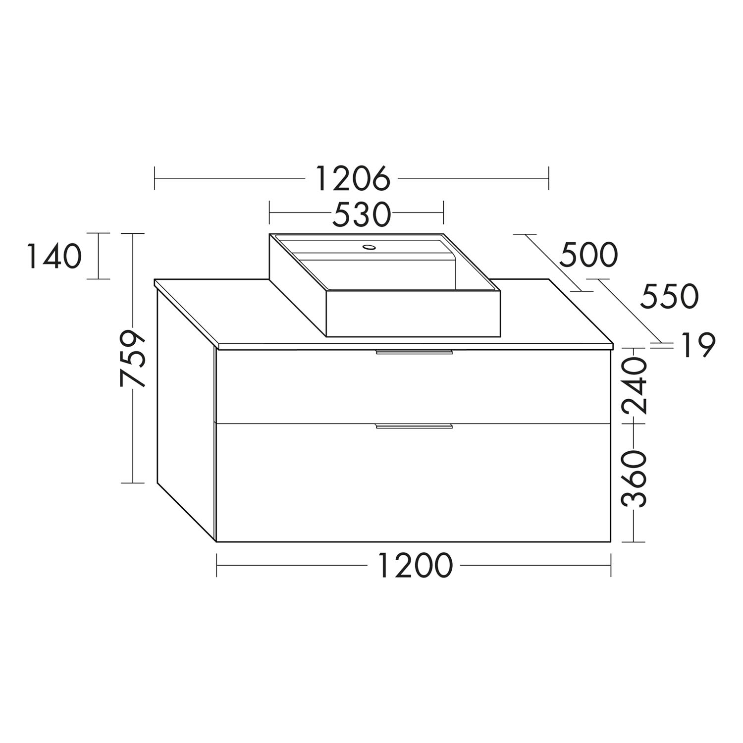burgbad Eqio Waschtischkombination mit Keramik-Aufsatzwaschtisch 120 cm, mit Griffleiste G0252