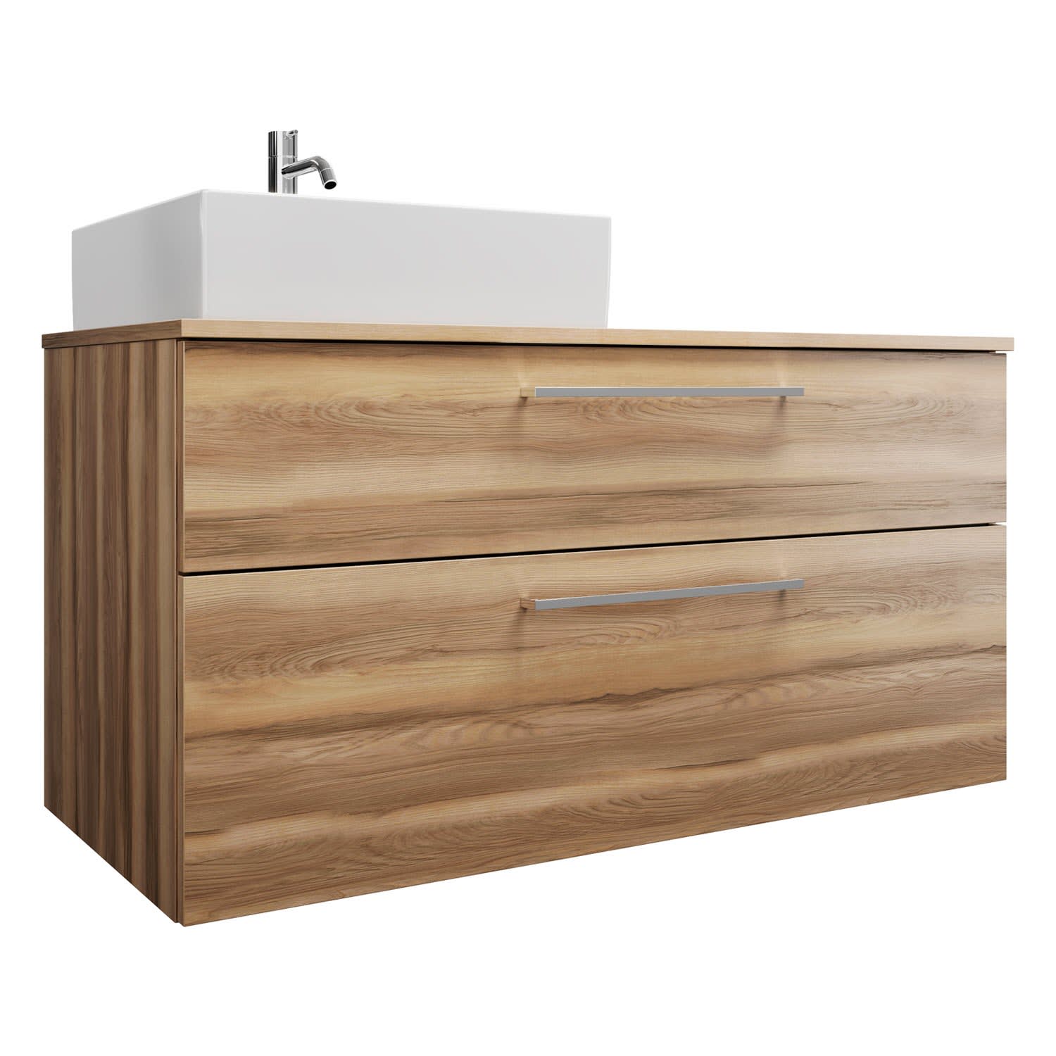 burgbad Eqio Waschtischkombination mit Keramik-Aufsatzwaschtisch 120 cm, links, mit Stangengriff P95