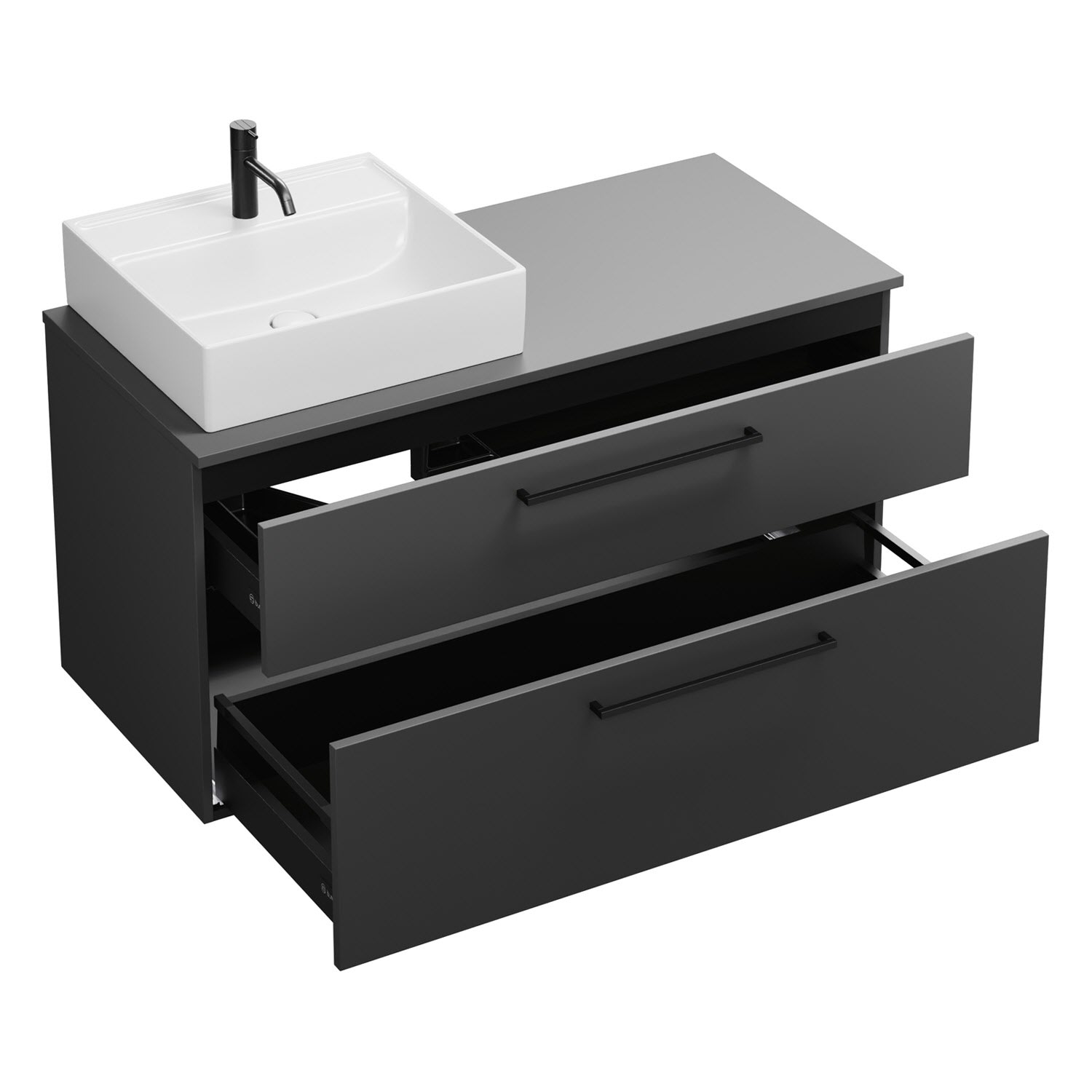 burgbad Eqio Waschtischkombination mit Keramik-Aufsatzwaschtisch 120 cm, links, mit Stangengriff G0234