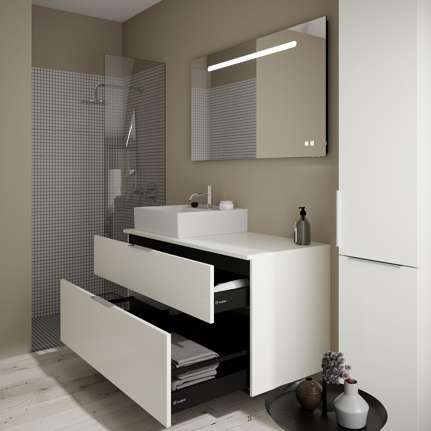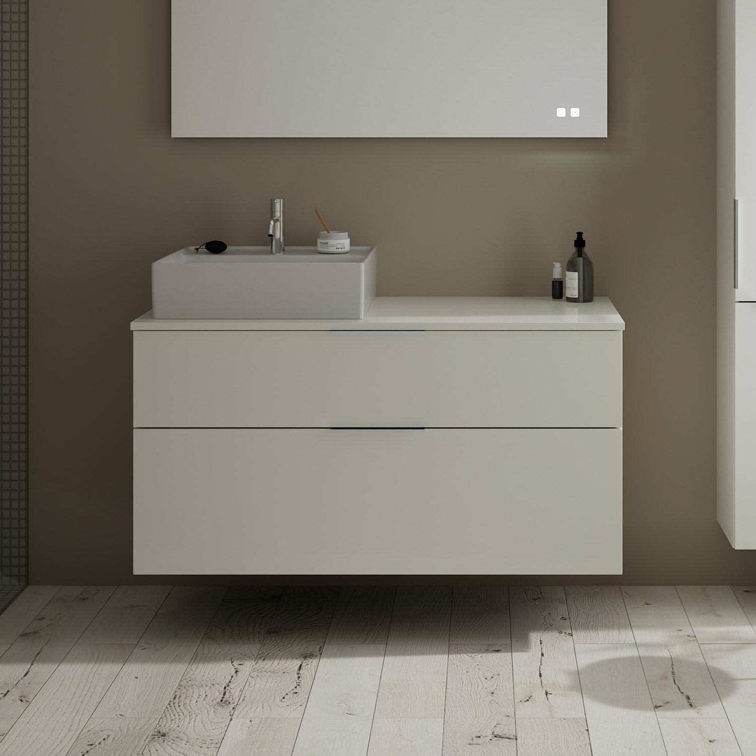 burgbad Eqio Waschtischkombination mit Keramik-Aufsatzwaschtisch 120 cm, links, mit Griff G0146