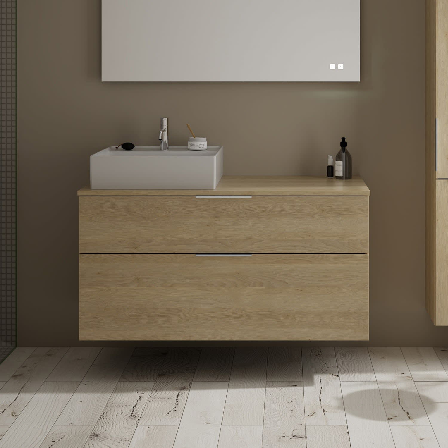 burgbad Eqio Waschtischkombination mit Keramik-Aufsatzwaschtisch 120 cm, links, mit Griff G0146