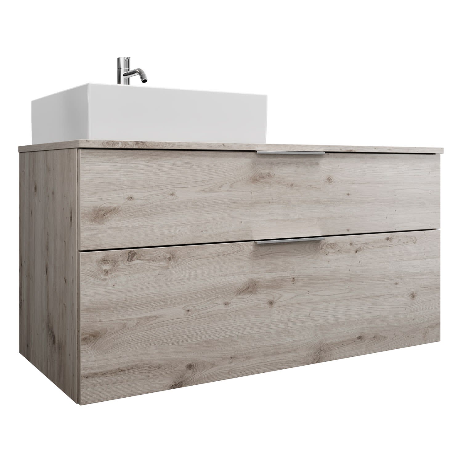 burgbad Eqio Waschtischkombination mit Keramik-Aufsatzwaschtisch 120 cm, links, mit Griff G0146