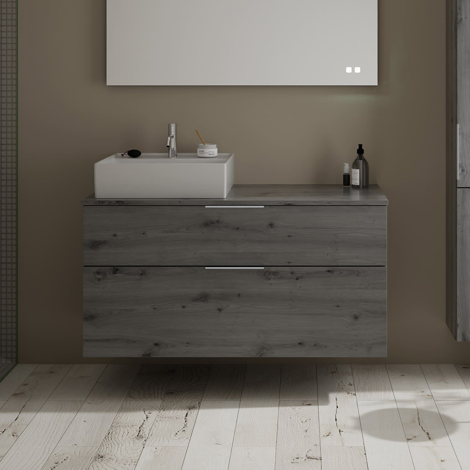 burgbad Eqio Waschtischkombination mit Keramik-Aufsatzwaschtisch 120 cm, links, mit Griff G0146