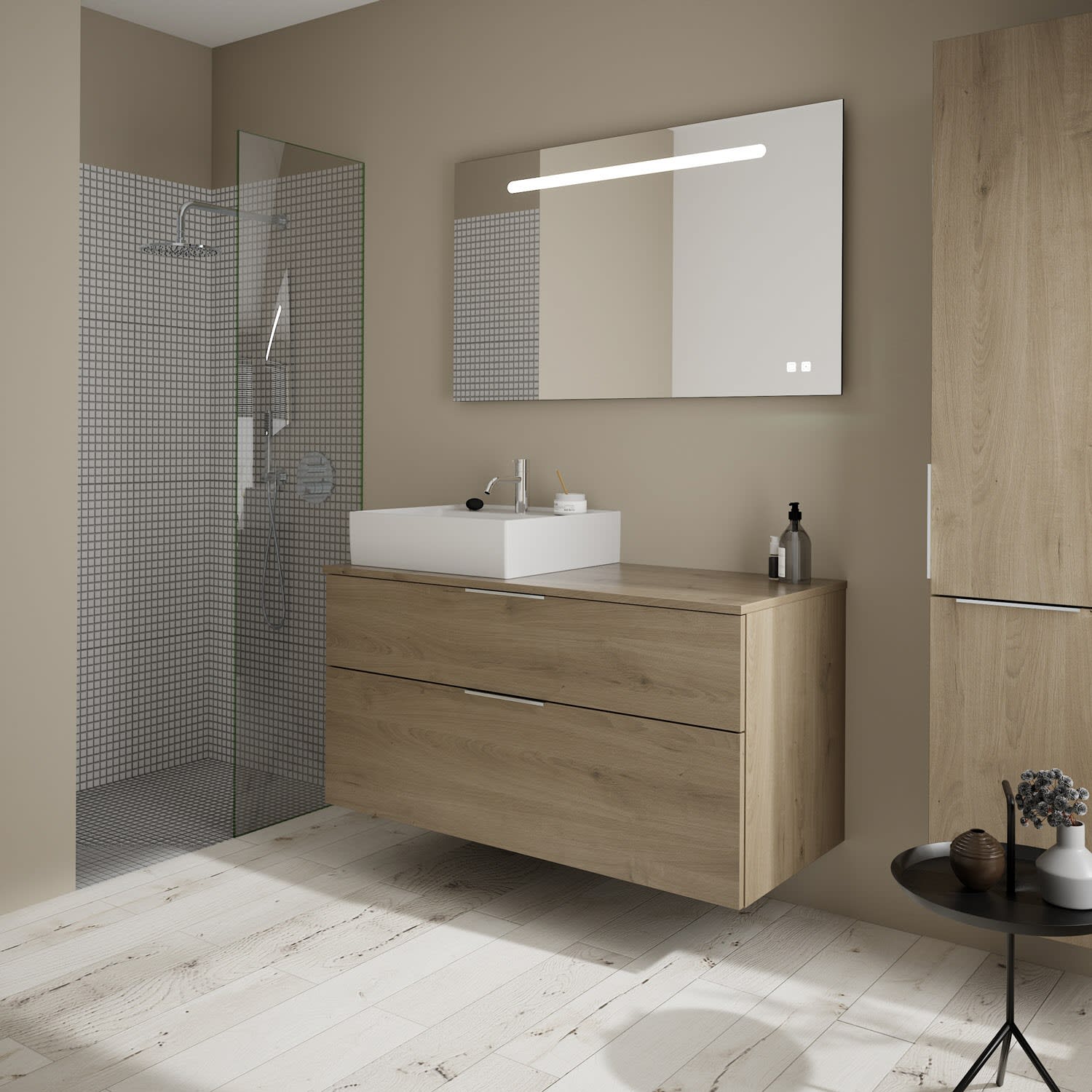 burgbad Eqio Waschtischkombination mit Keramik-Aufsatzwaschtisch 120 cm, links, mit Griff G0146