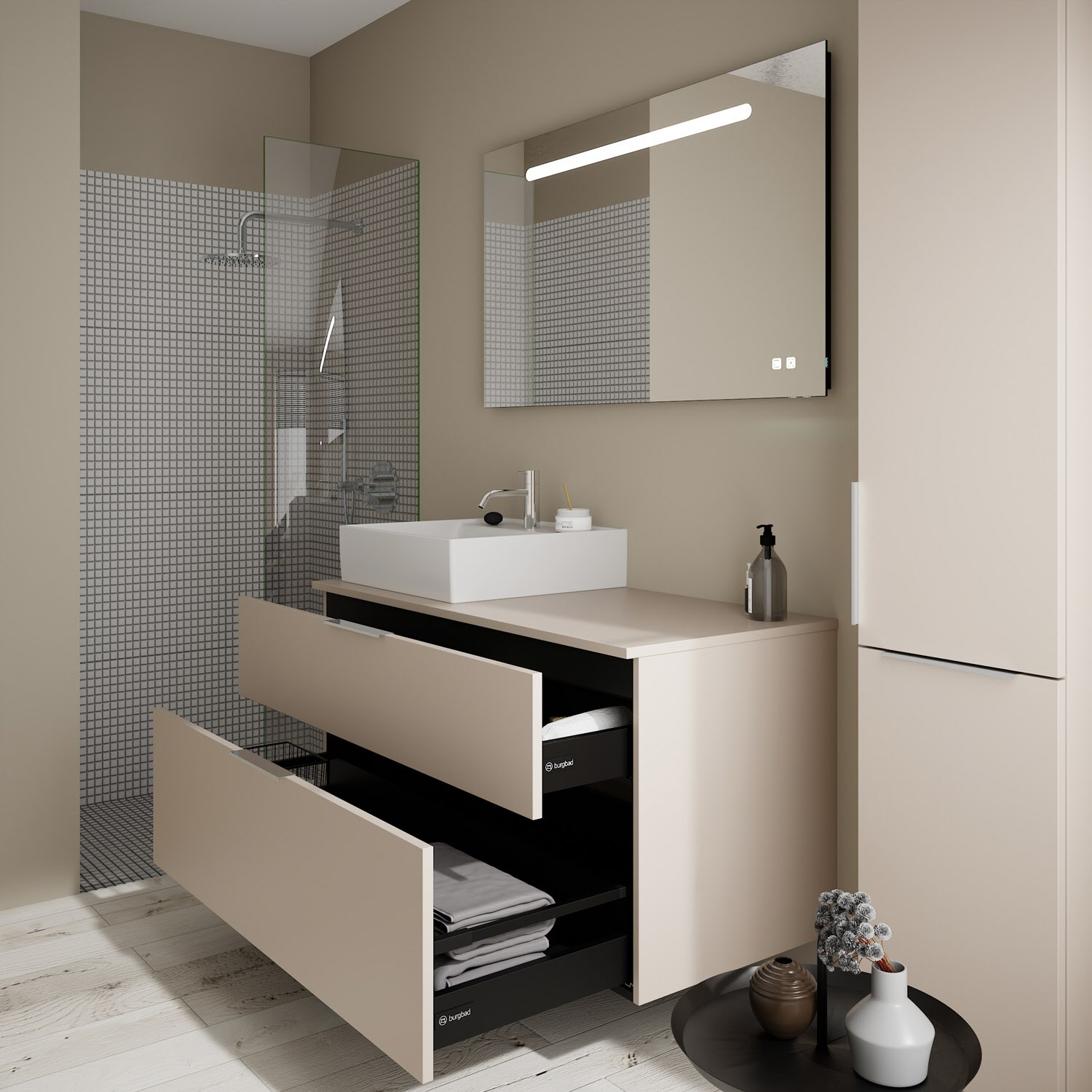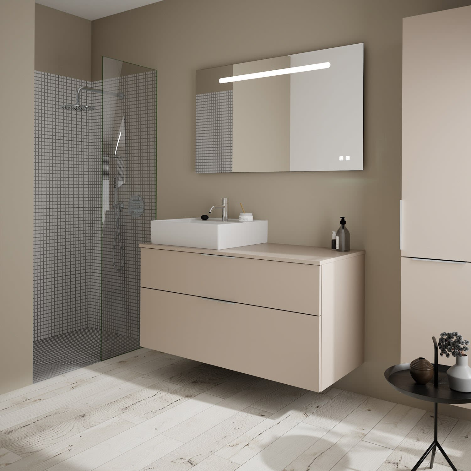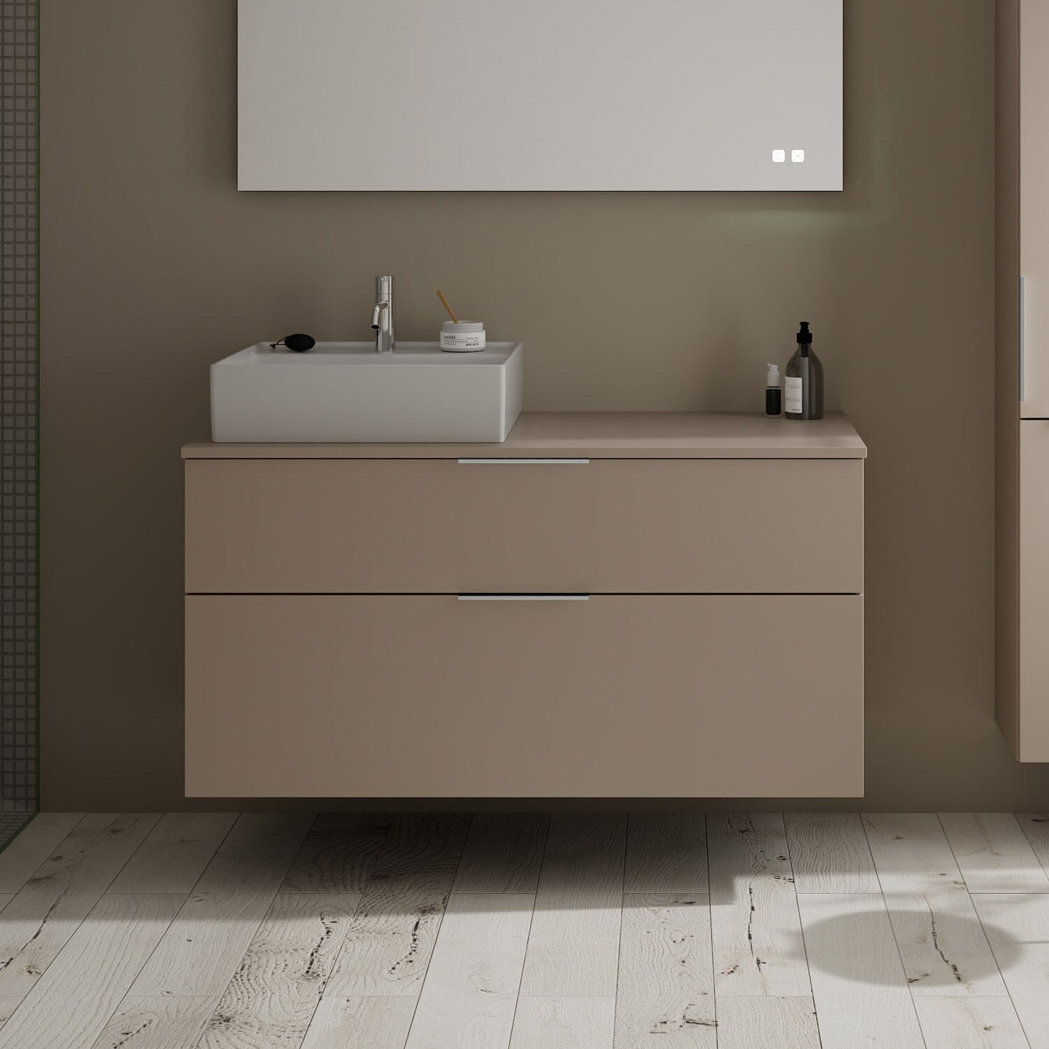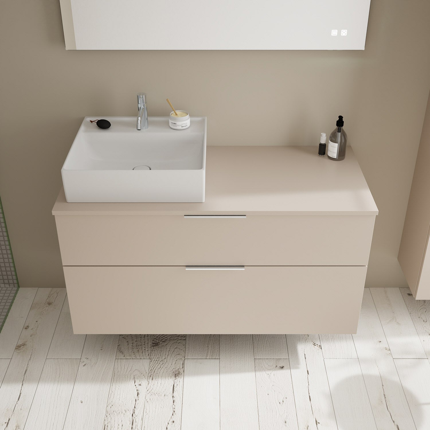 burgbad Eqio Waschtischkombination mit Keramik-Aufsatzwaschtisch 120 cm, links, mit Griff G0146