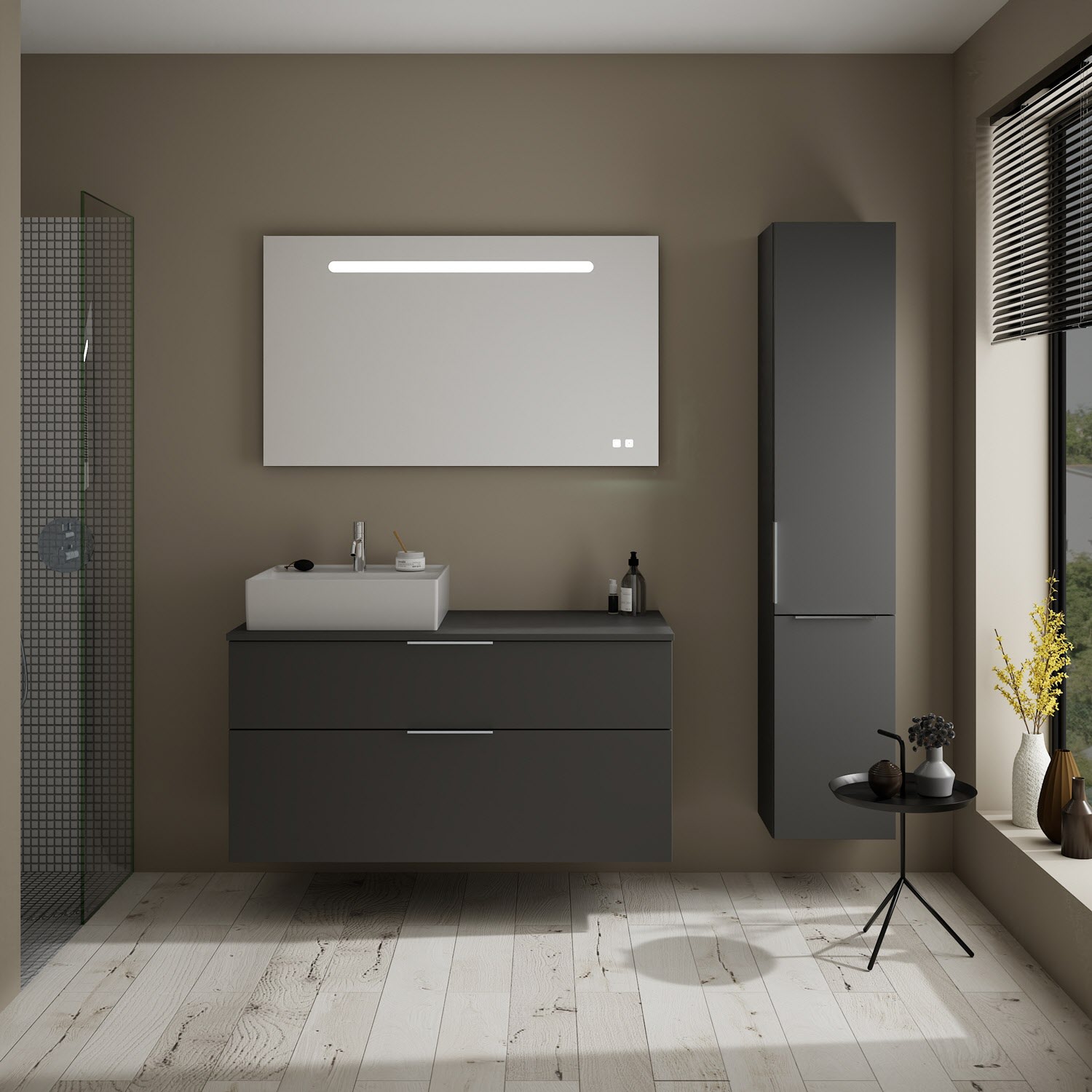 - Boden/Rückwand: Anthrazitgrau