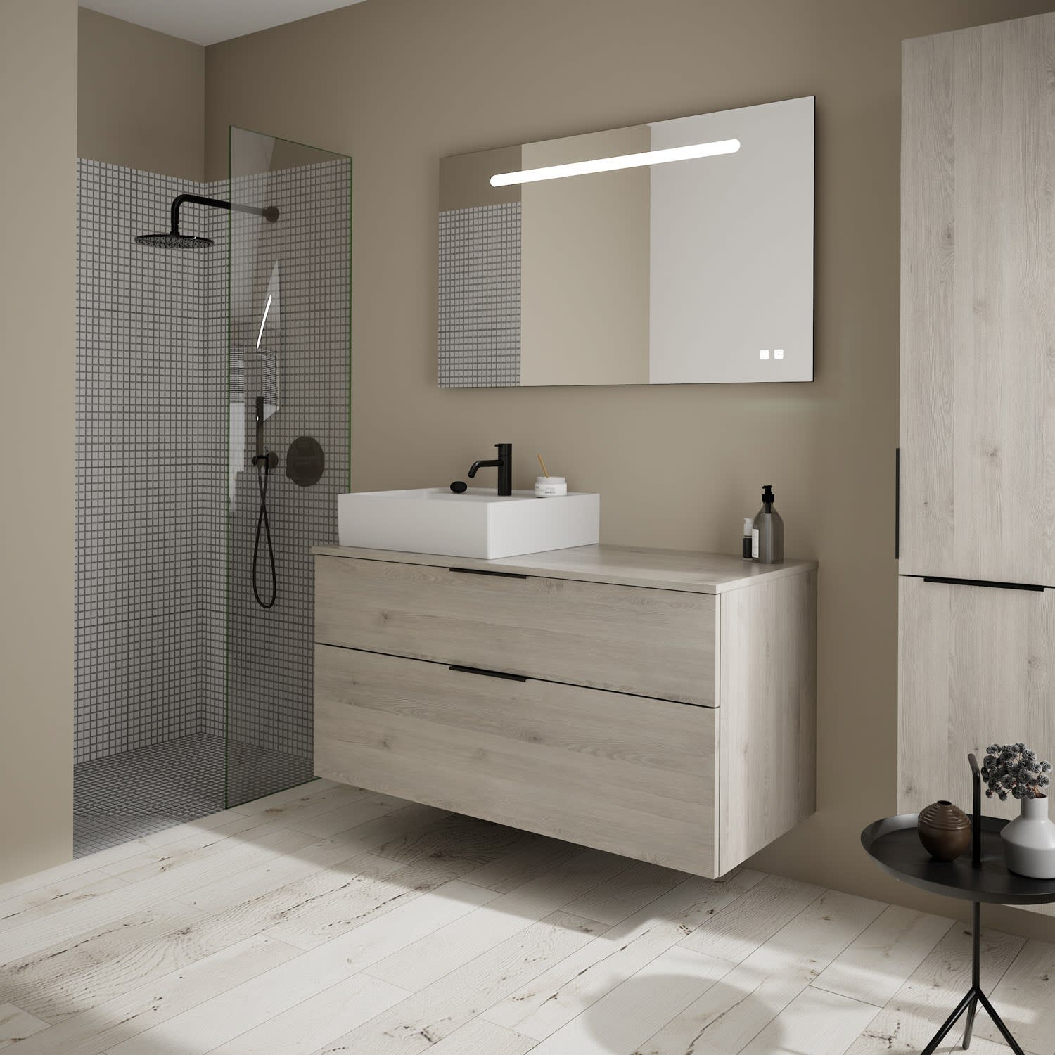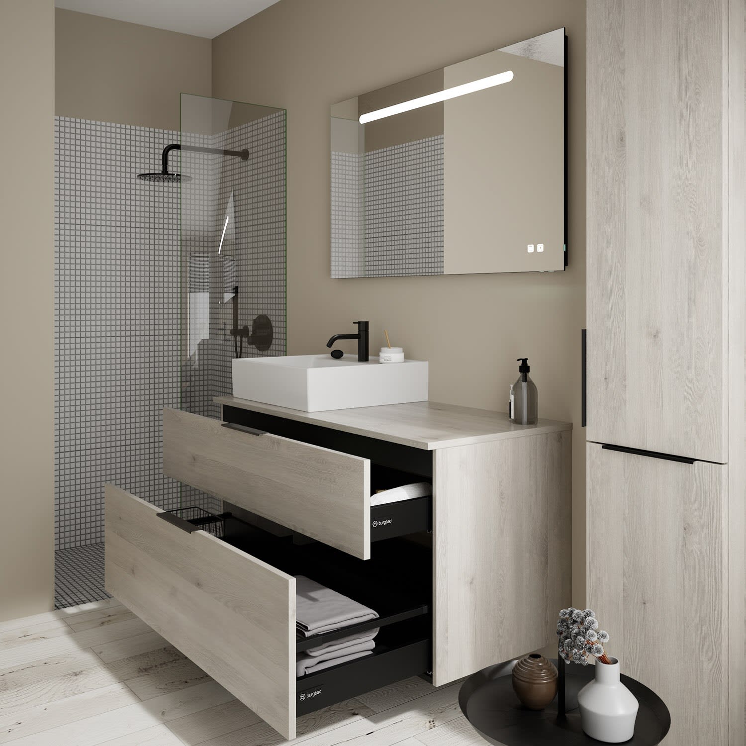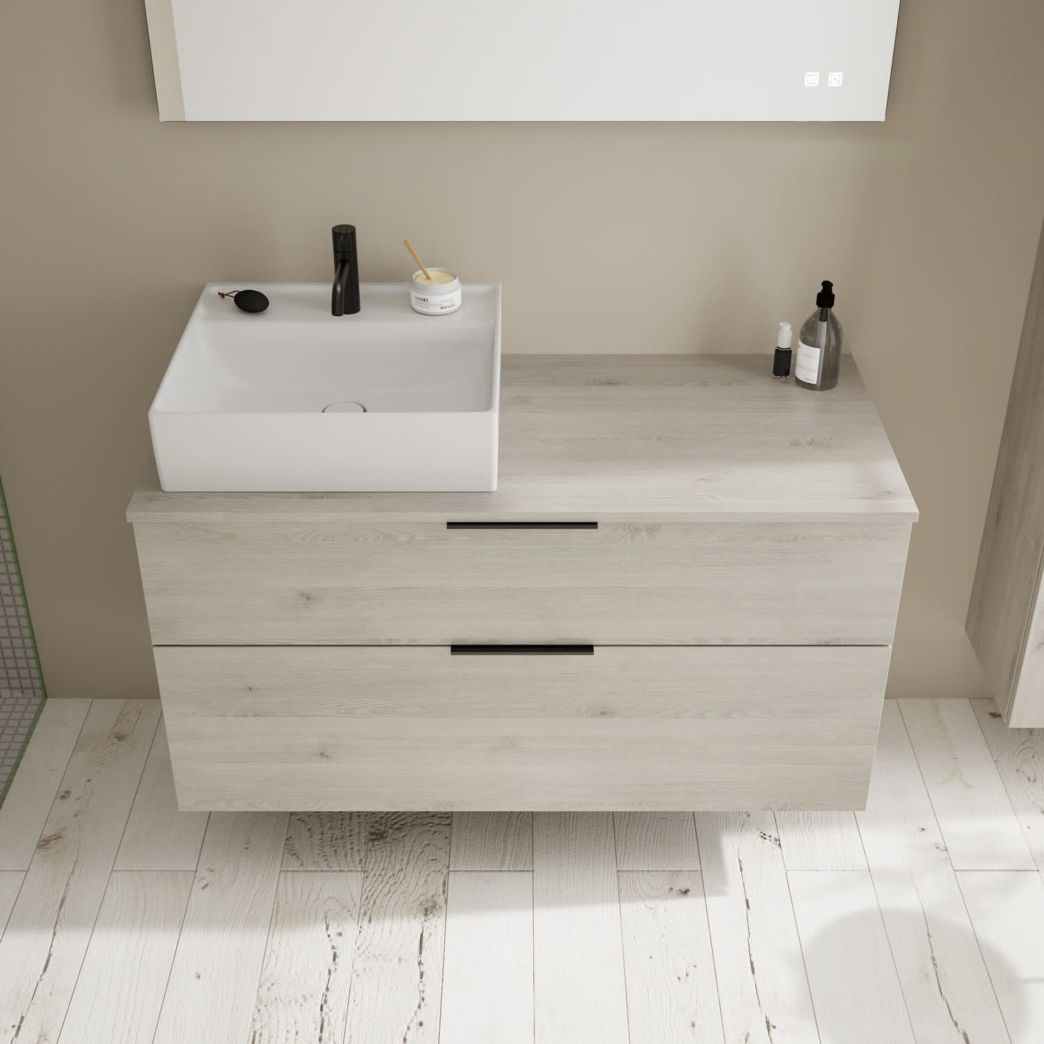 burgbad Eqio Waschtischkombination mit Keramik-Aufsatzwaschtisch 120 cm, links, mit Griff G0200