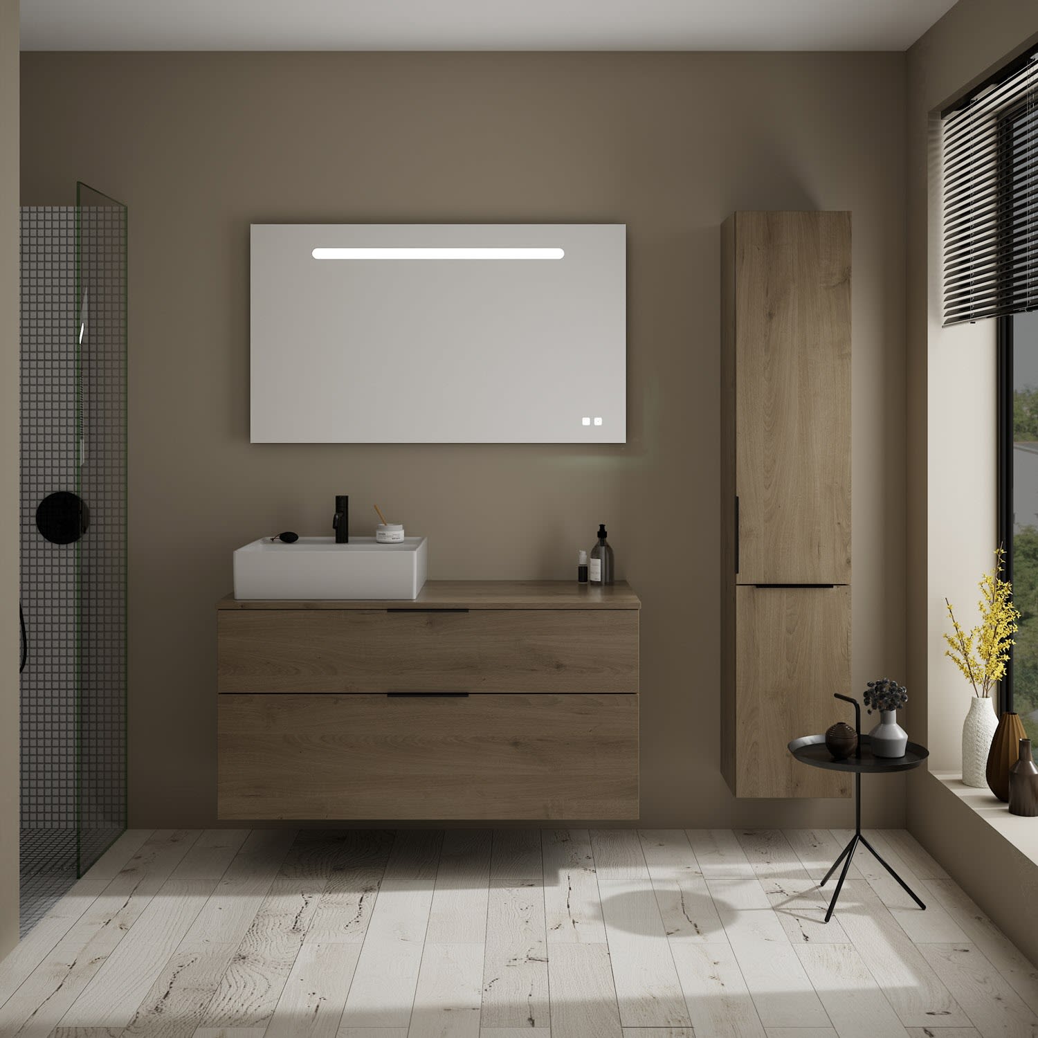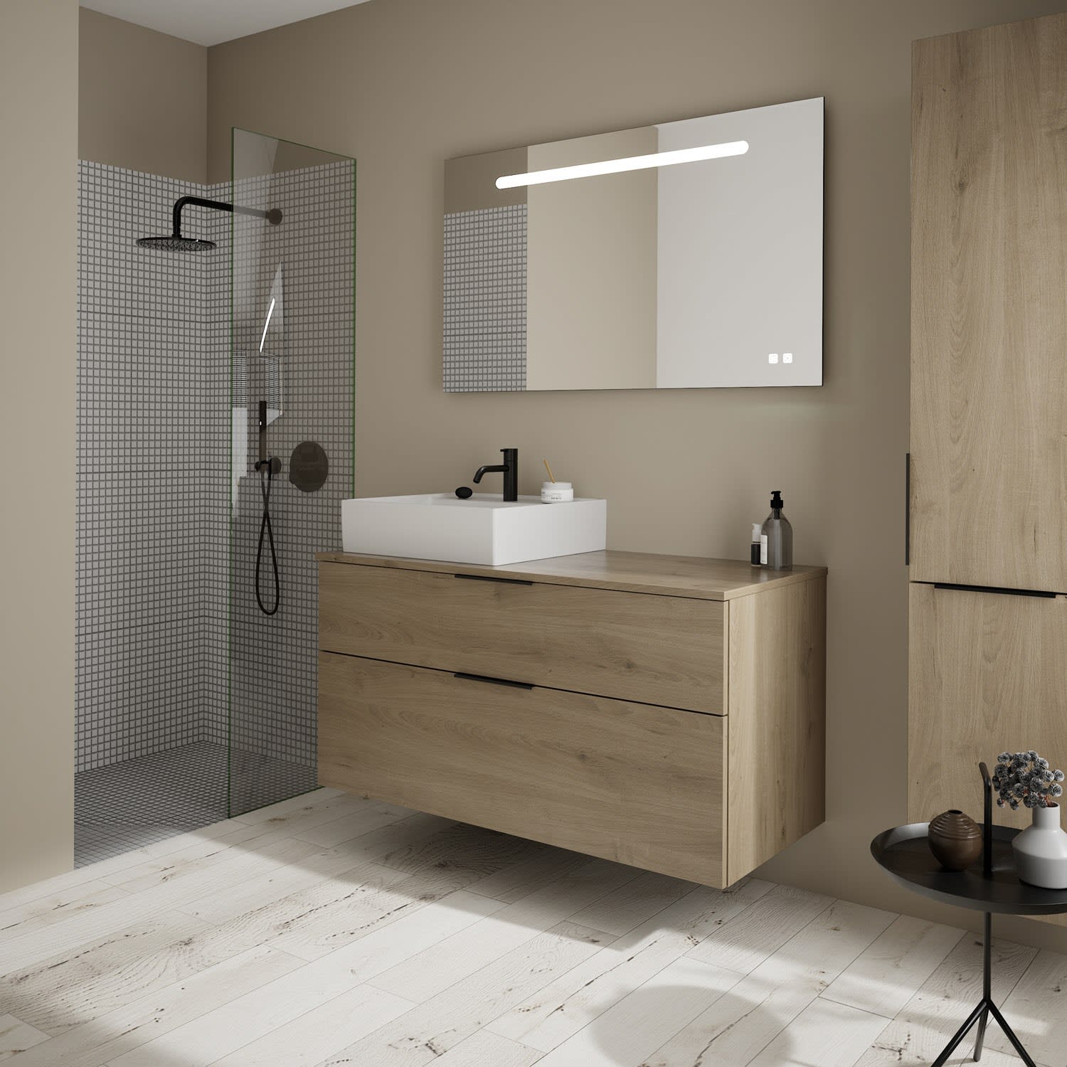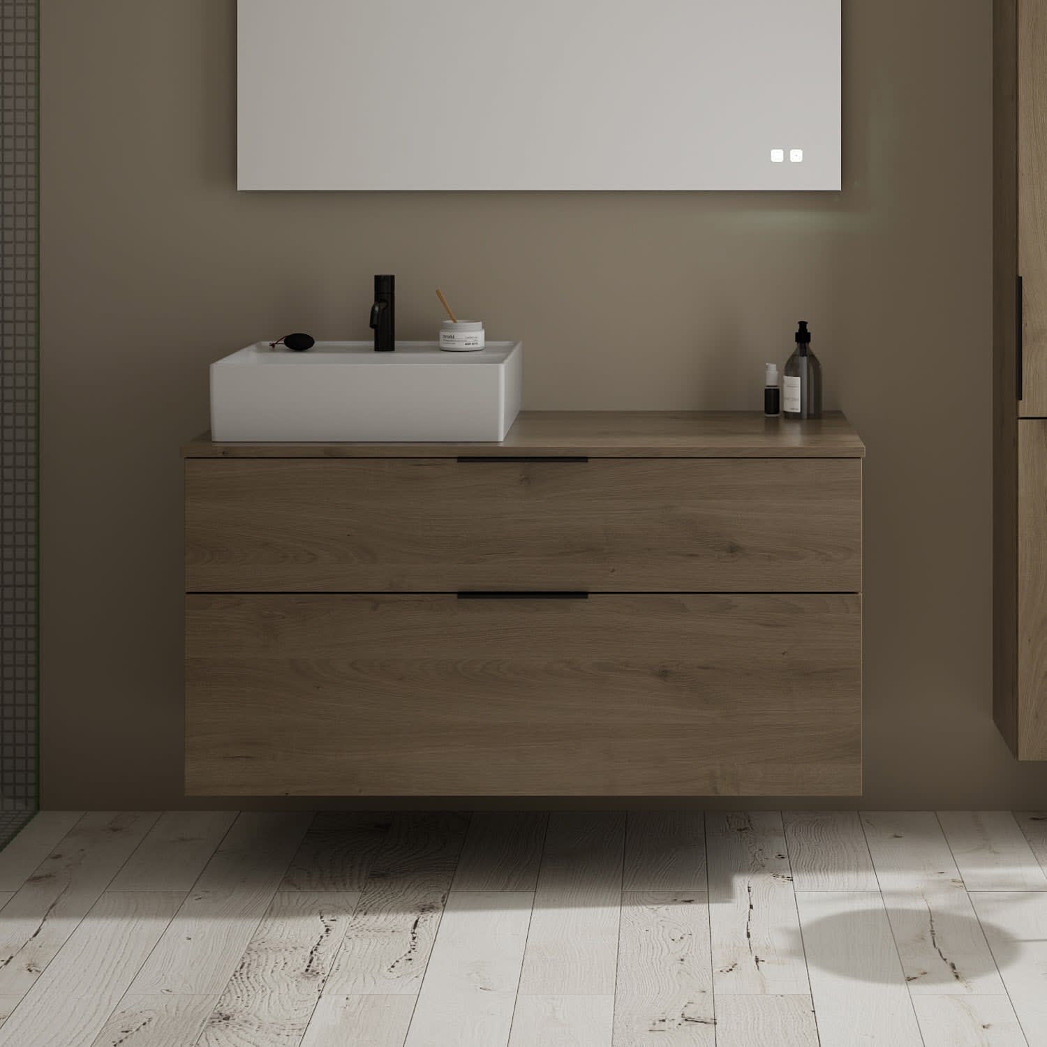 burgbad Eqio Waschtischkombination mit Keramik-Aufsatzwaschtisch 120 cm, links, mit Griff G0200