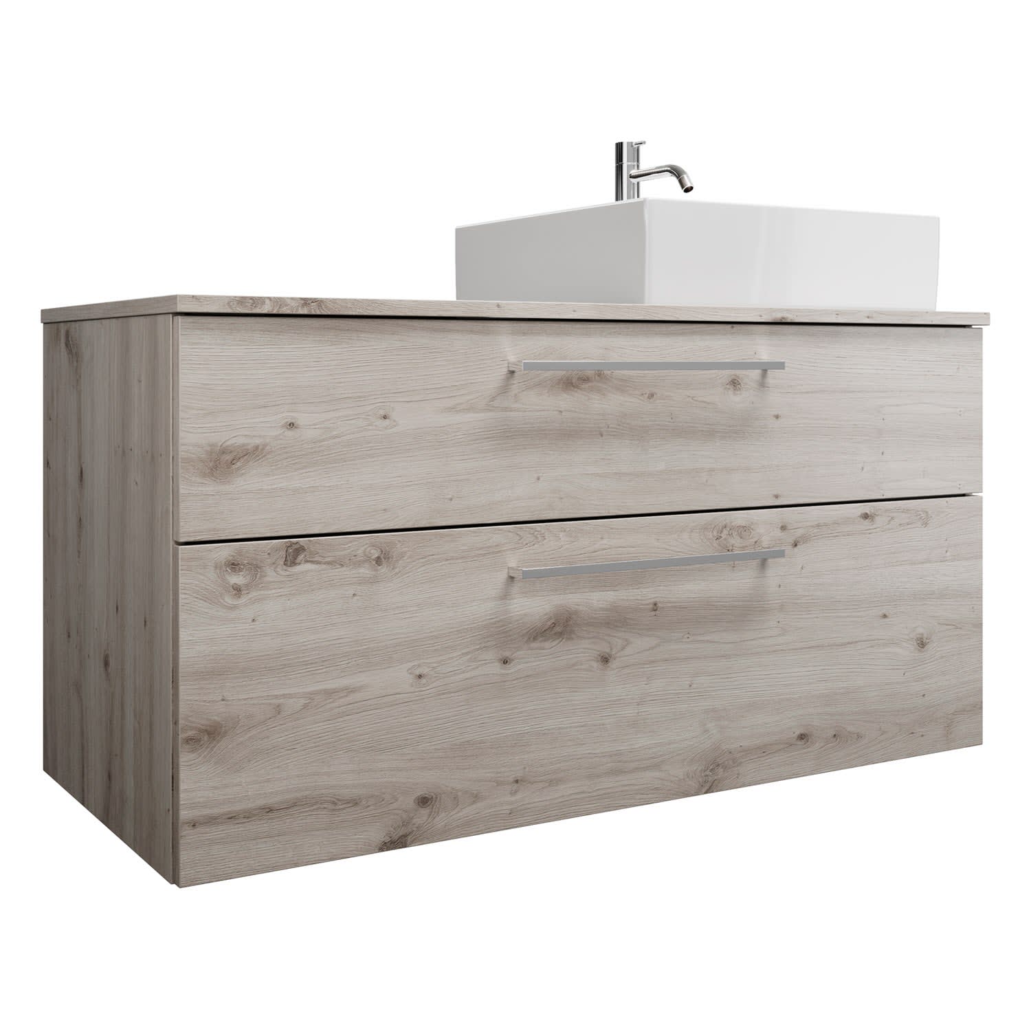 burgbad Eqio Waschtischkombination mit Keramik-Aufsatzwaschtisch 120 cm, rechts, mit Stangengriff P95