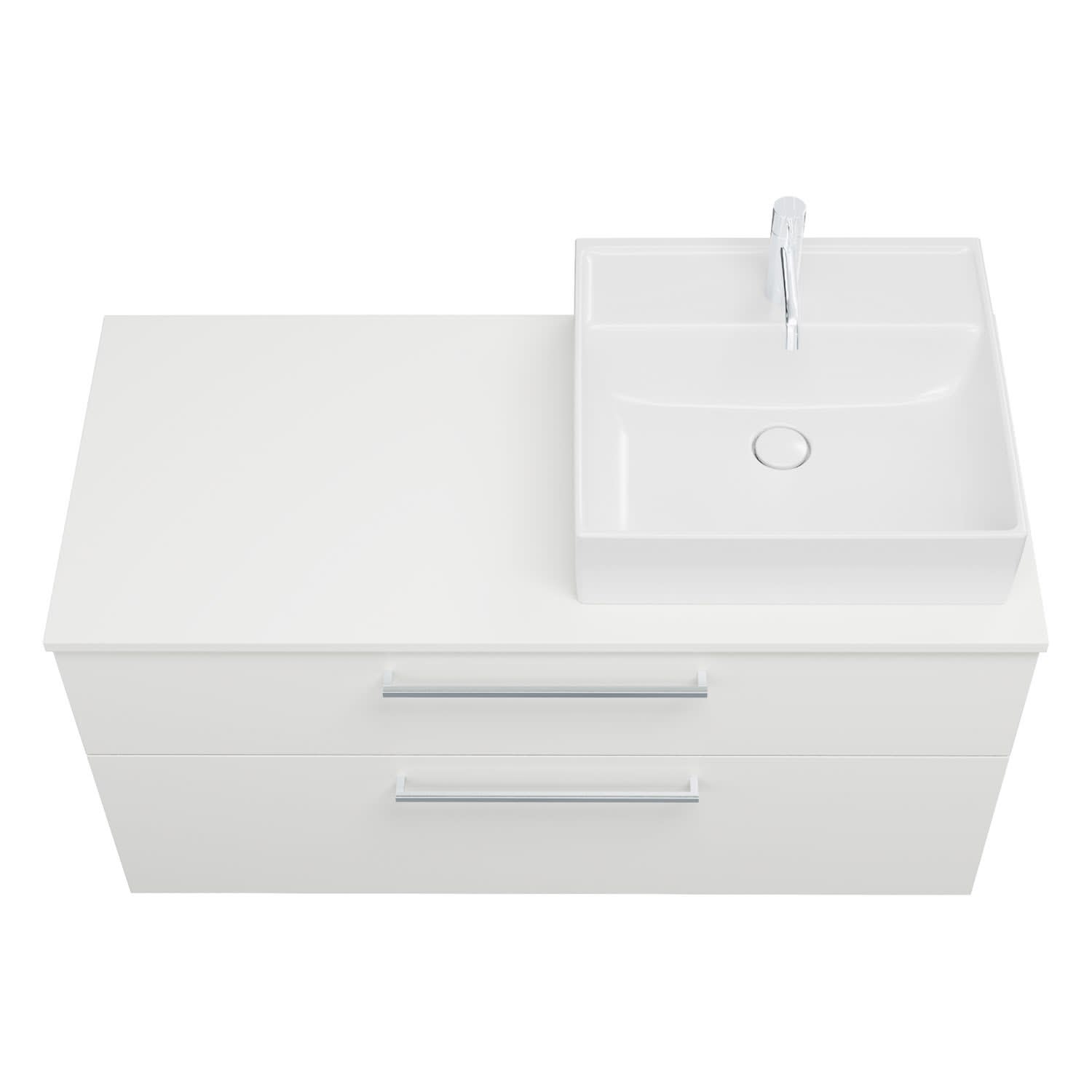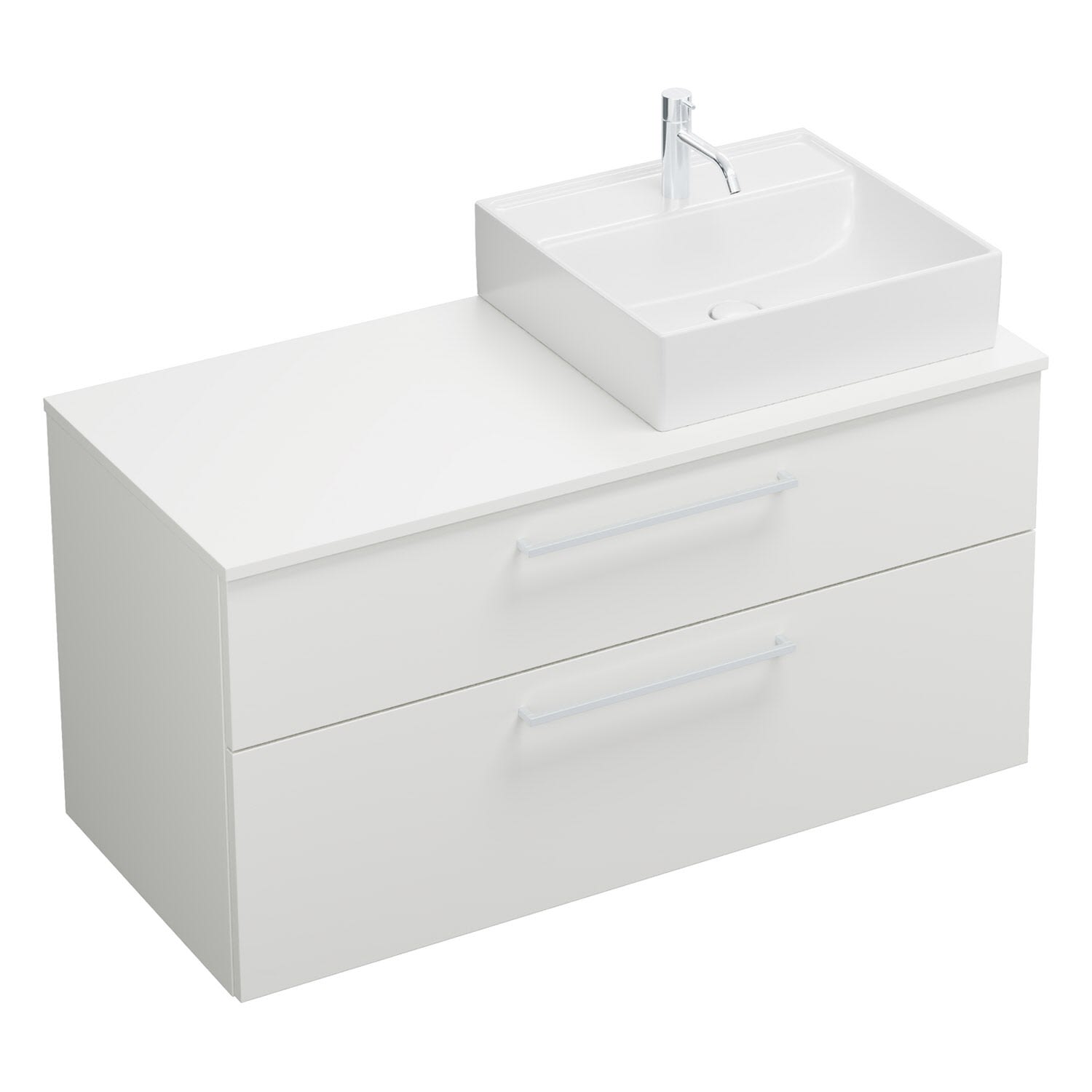 burgbad Eqio Waschtischkombination mit Keramik-Aufsatzwaschtisch 120 cm, rechts, mit Stangengriff P95
