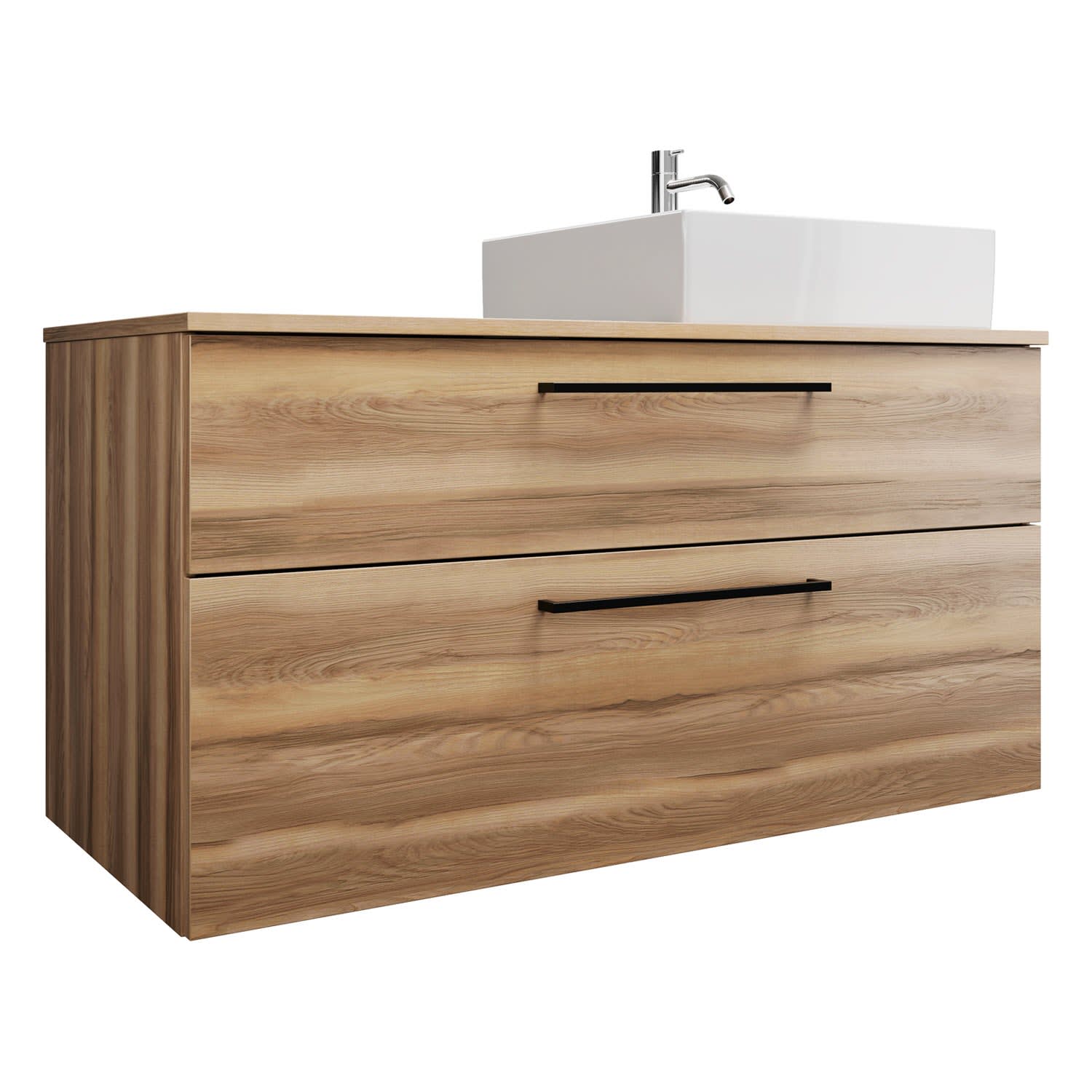burgbad Eqio Waschtischkombination mit Keramik-Aufsatzwaschtisch 120 cm, rechts, mit Stangengriff G0234
