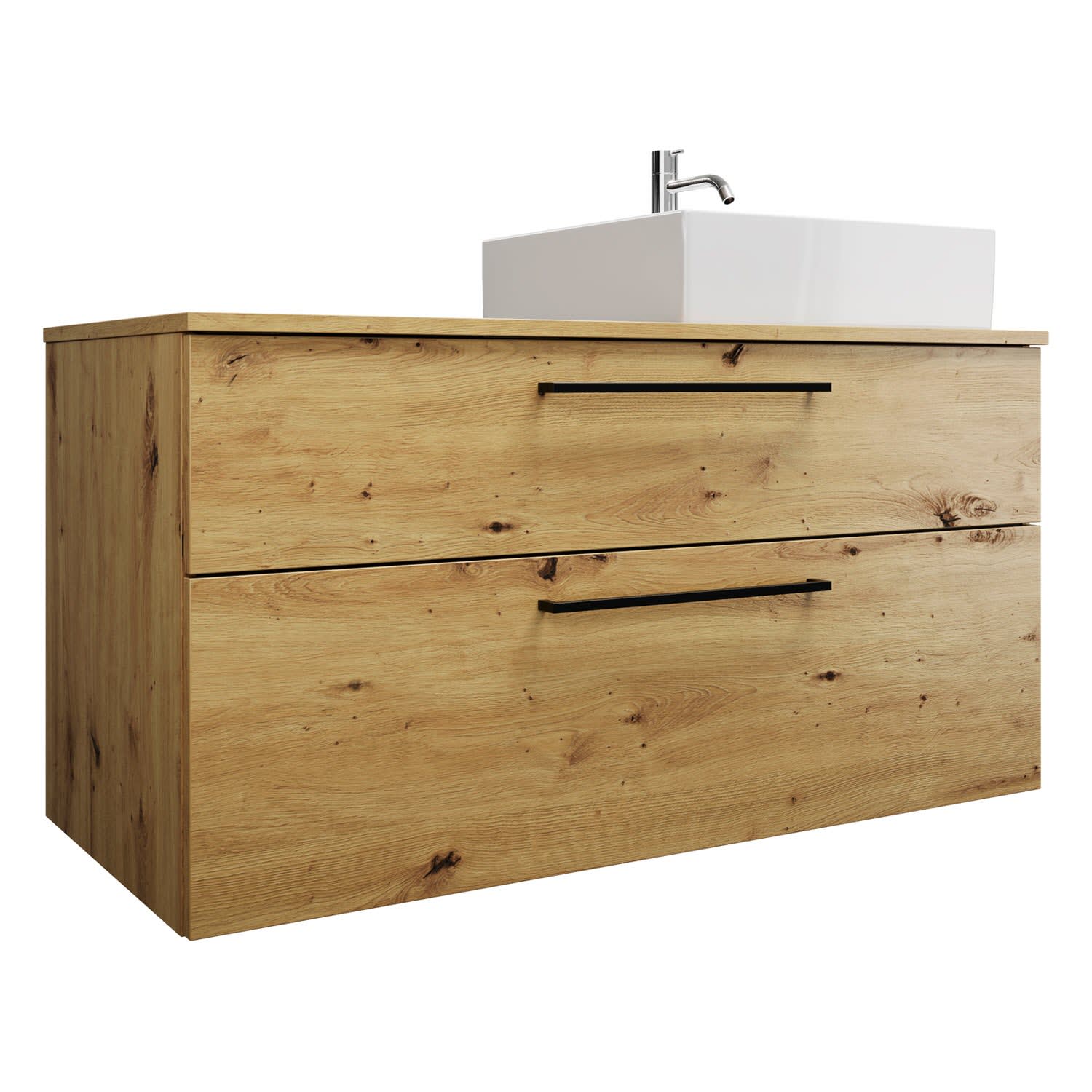 burgbad Eqio Waschtischkombination mit Keramik-Aufsatzwaschtisch 120 cm, rechts, mit Stangengriff G0234