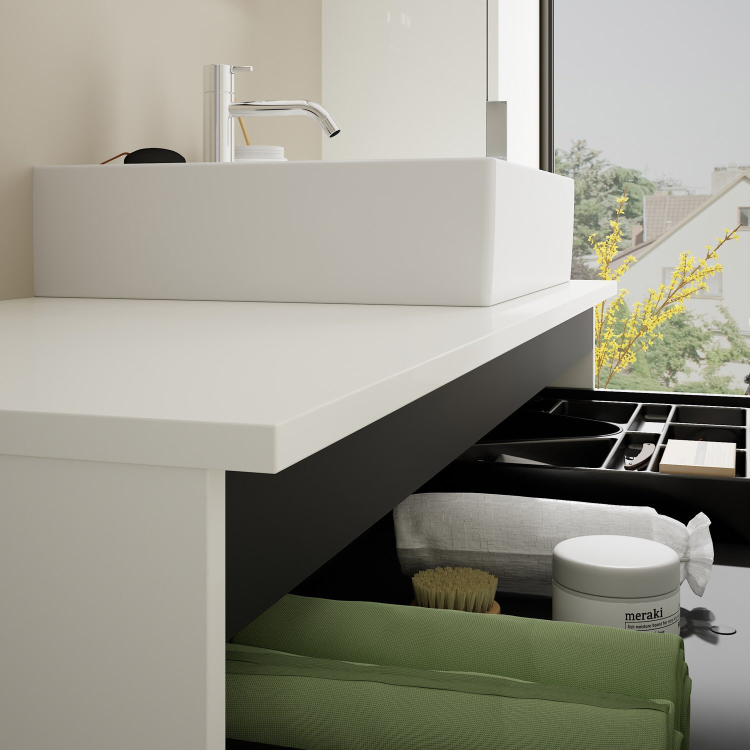 burgbad Eqio Waschtischkombination mit Keramik-Aufsatzwaschtisch 120 cm, rechts, mit Griff G146