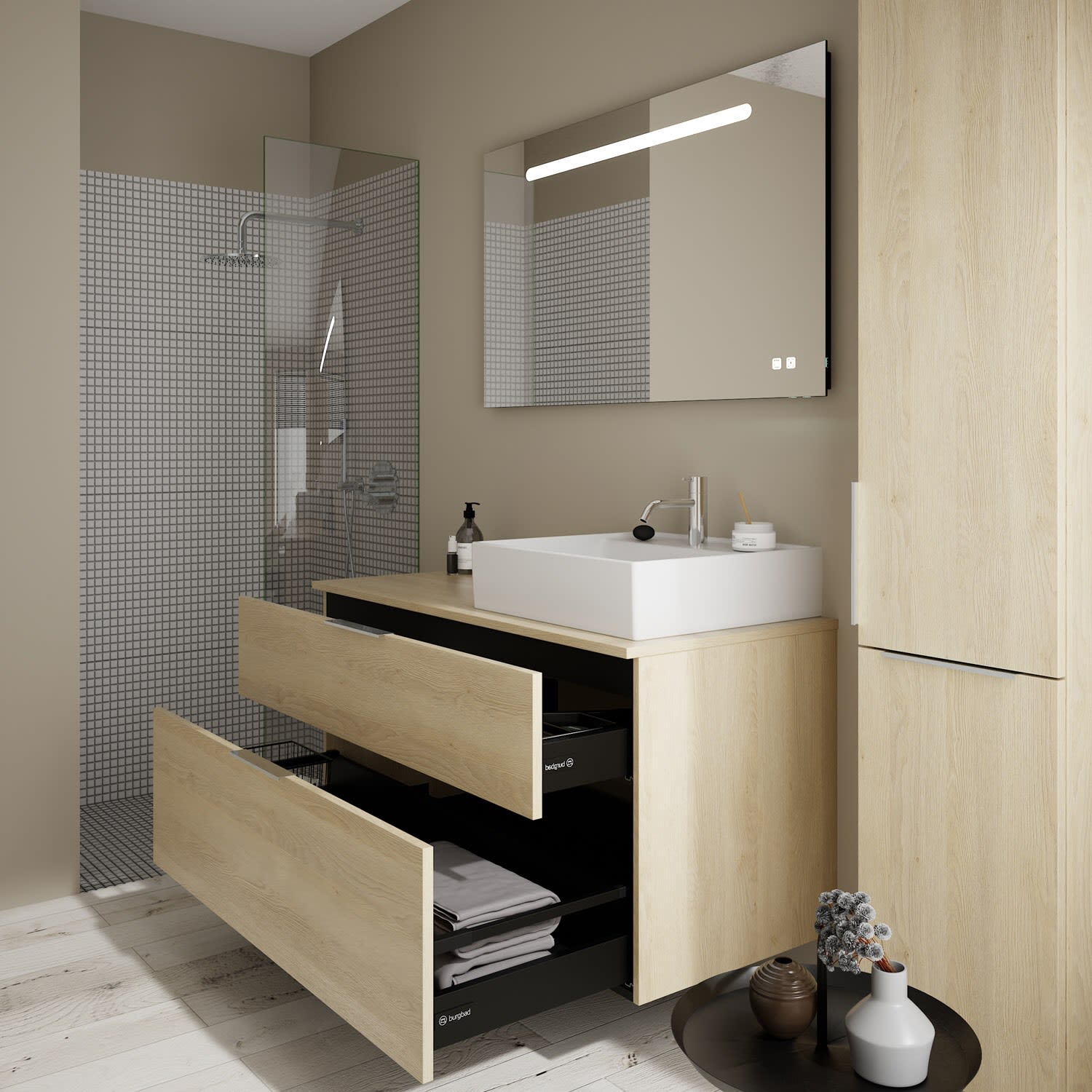 burgbad Eqio Waschtischkombination mit Keramik-Aufsatzwaschtisch 120 cm, rechts, mit Griff G146