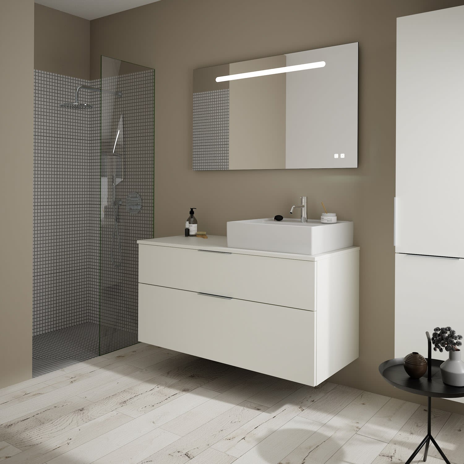 burgbad Eqio Waschtischkombination mit Keramik-Aufsatzwaschtisch 120 cm, rechts, mit Griff G146