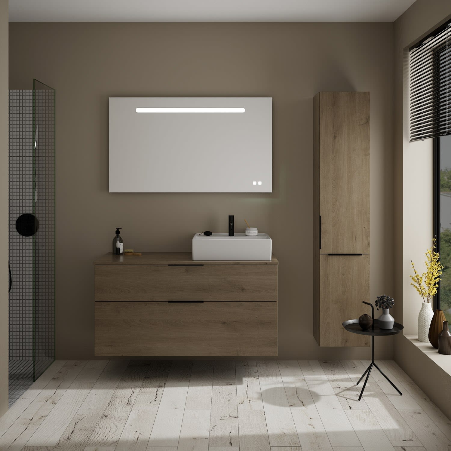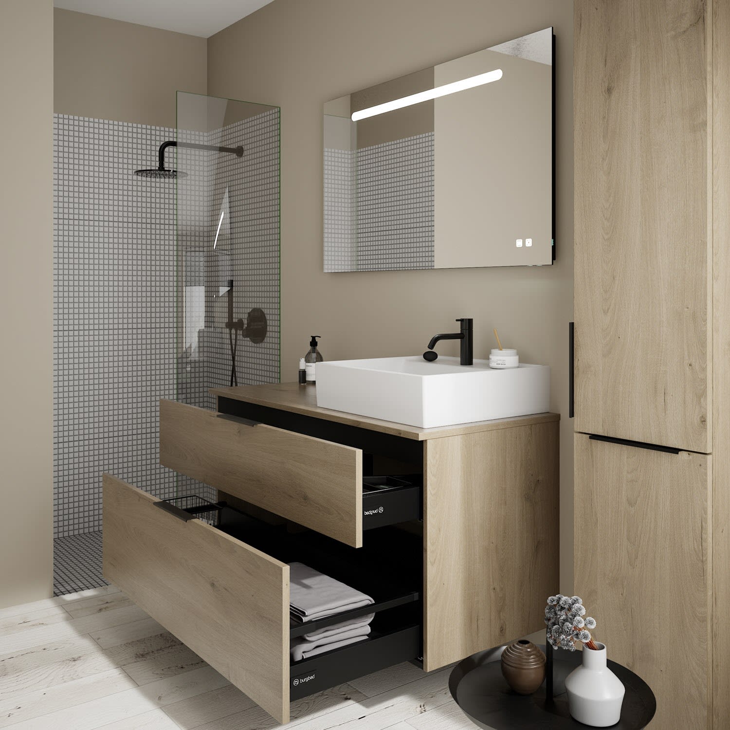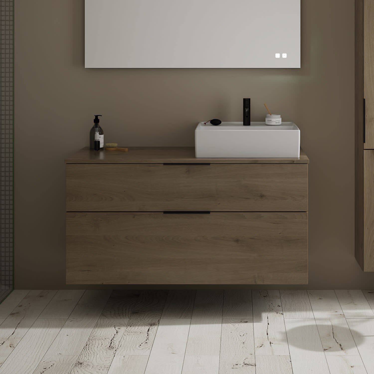 burgbad Eqio Waschtischkombination mit Keramik-Aufsatzwaschtisch 120 cm, rechts, mit Griff G0200