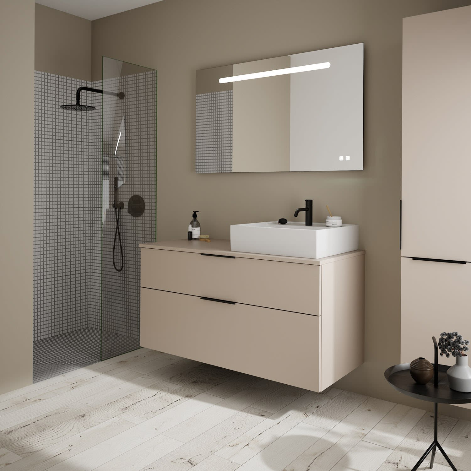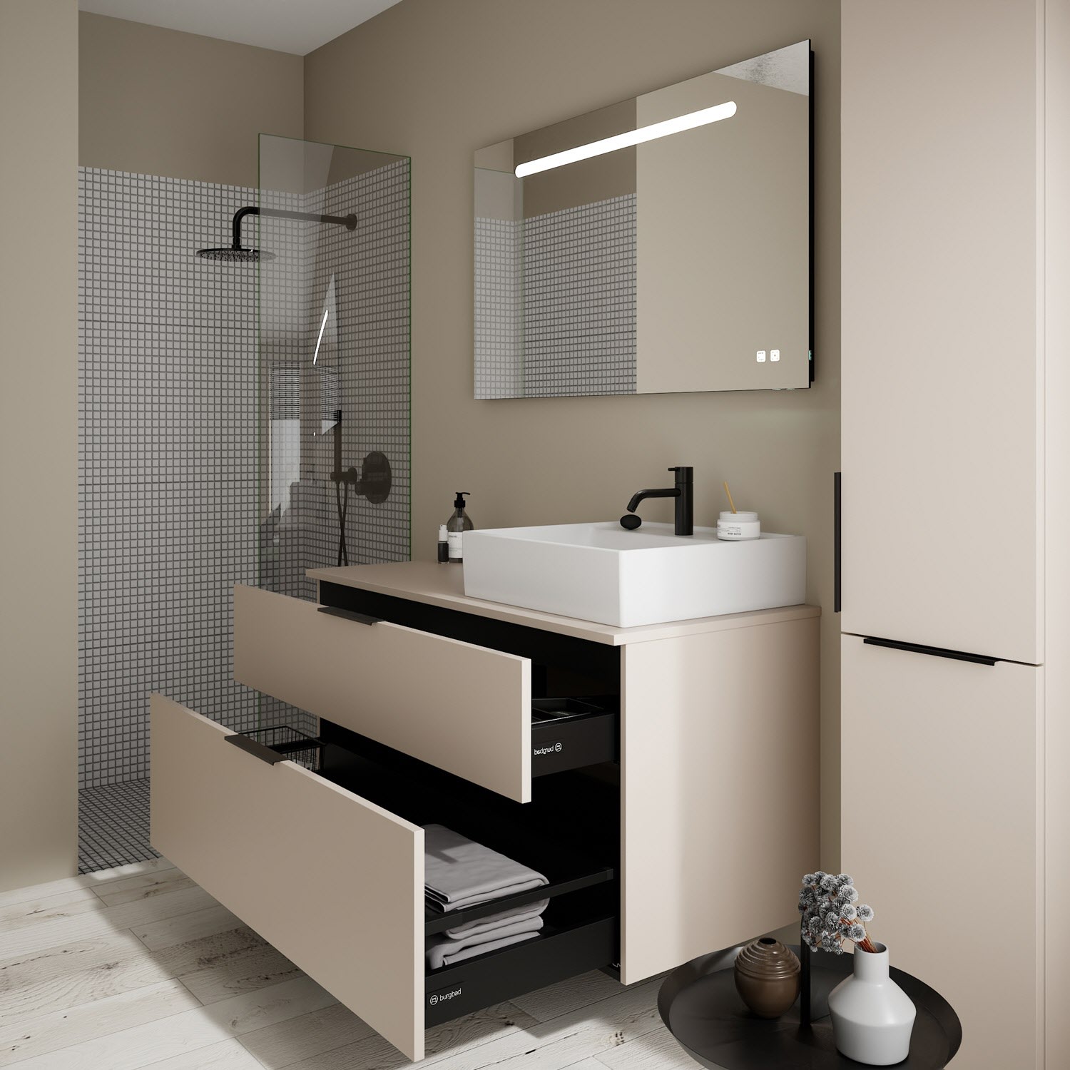 burgbad Eqio Waschtischkombination mit Keramik-Aufsatzwaschtisch 120 cm, rechts, mit Griff G0200