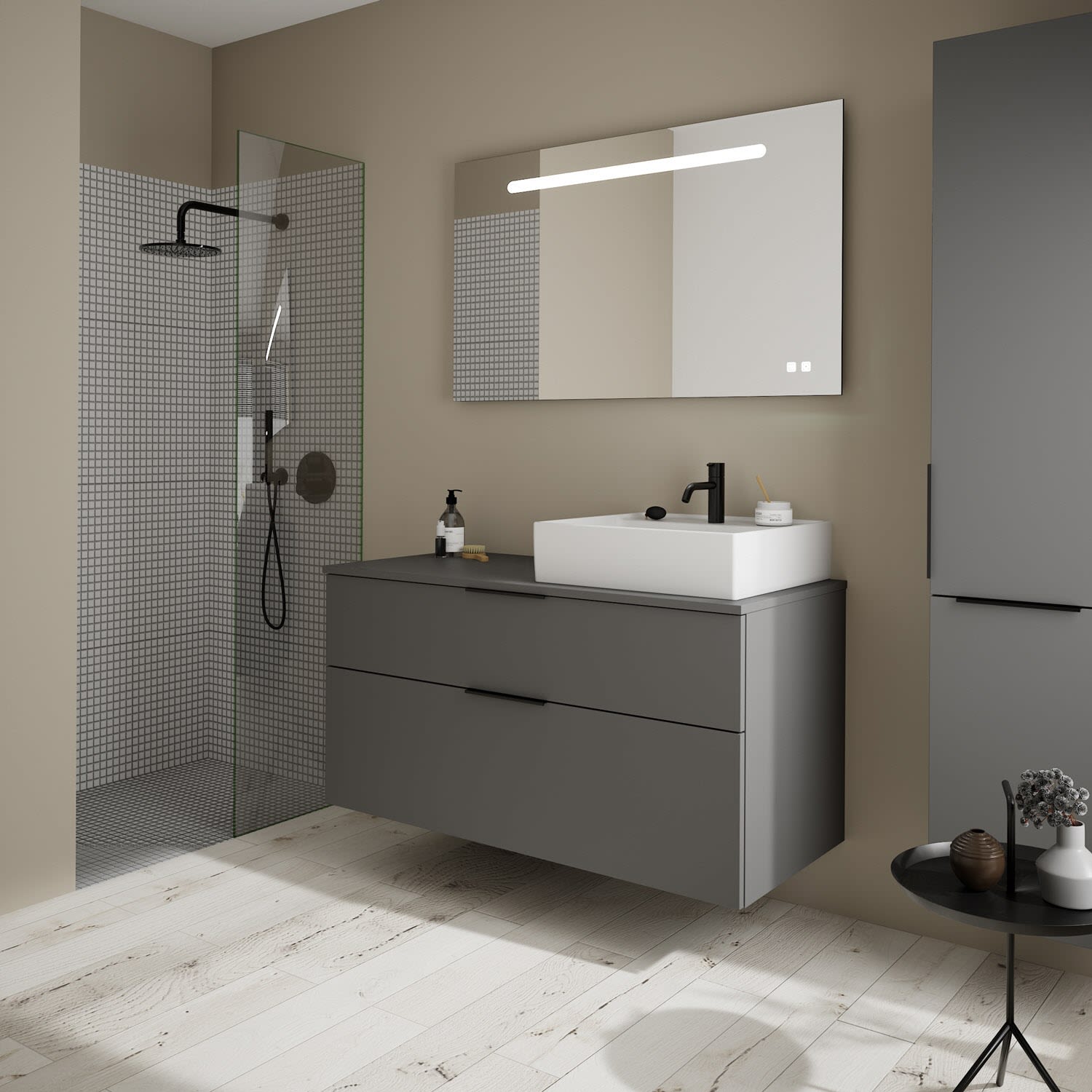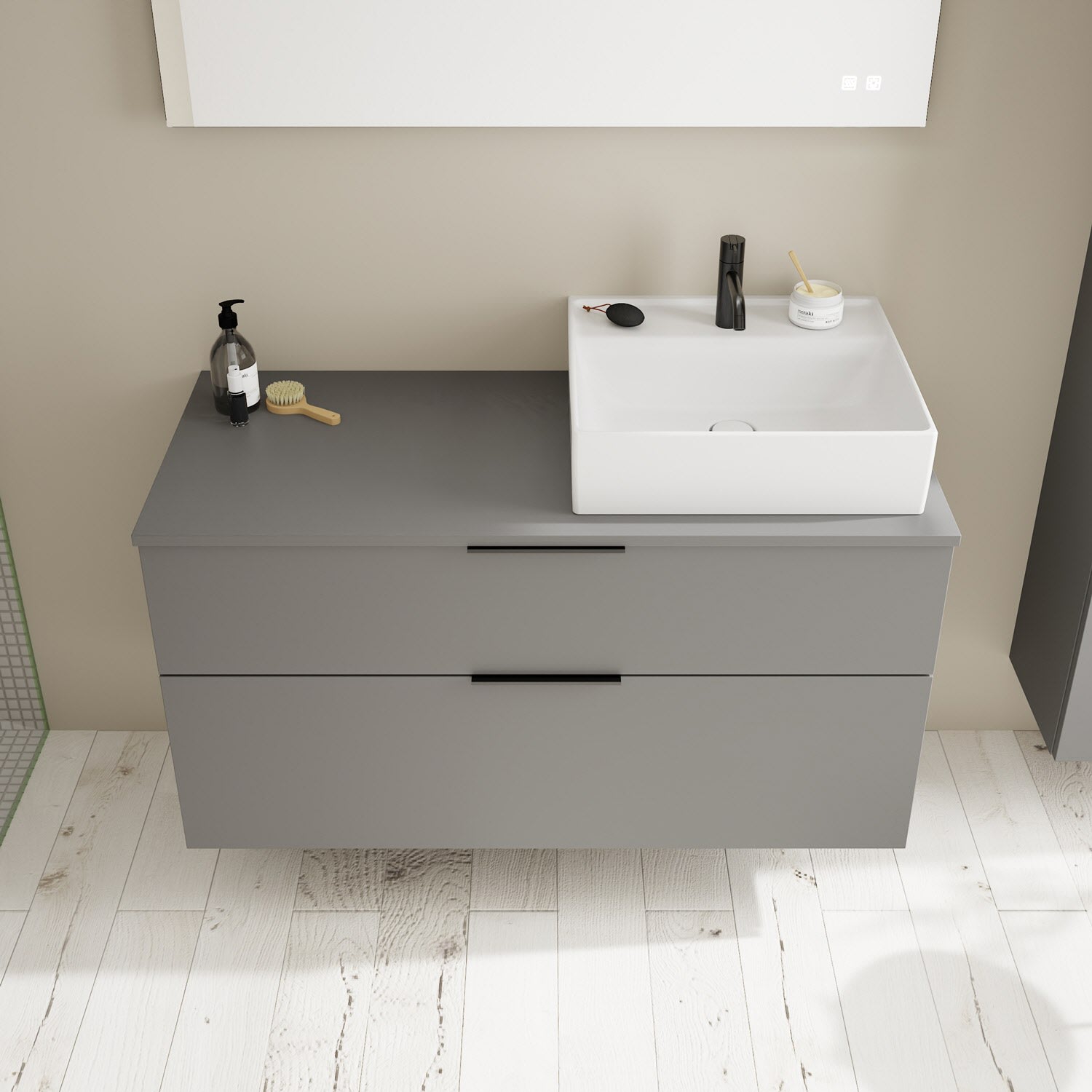burgbad Eqio Waschtischkombination mit Keramik-Aufsatzwaschtisch 120 cm, rechts, mit Griff G0200