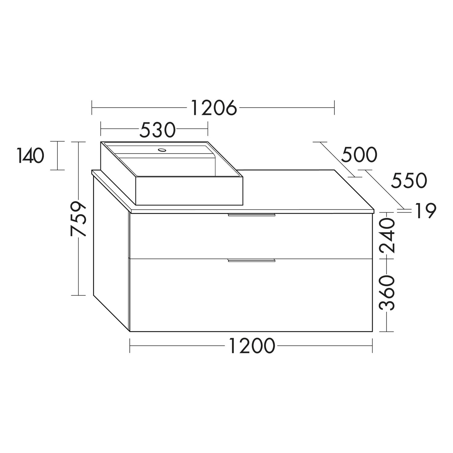 burgbad Eqio Waschtischkombination mit Keramik-Aufsatzwaschtisch 120 cm, rechts, mit Griffleiste G0251