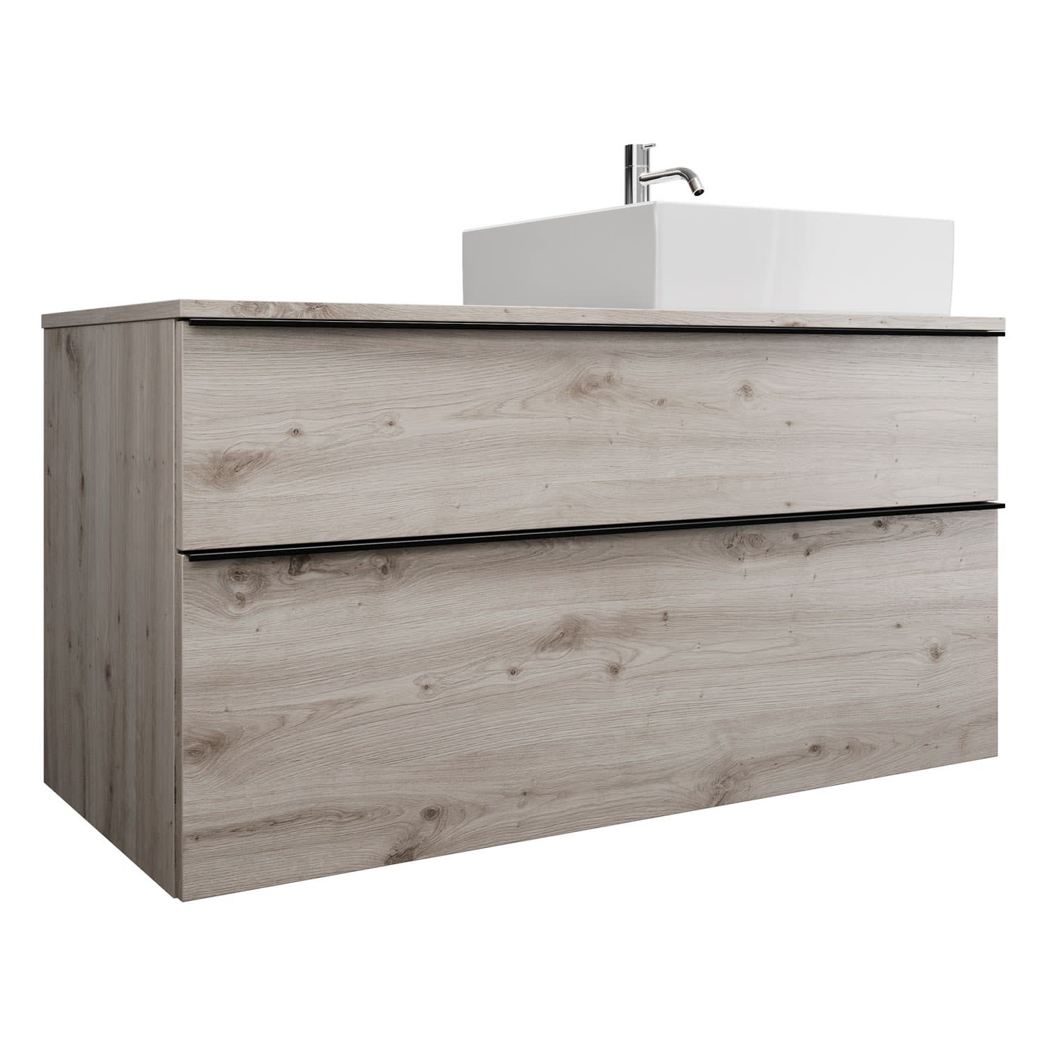 burgbad Eqio Waschtischkombination mit Keramik-Aufsatzwaschtisch 120 cm, rechts, mit Griffleiste G0252