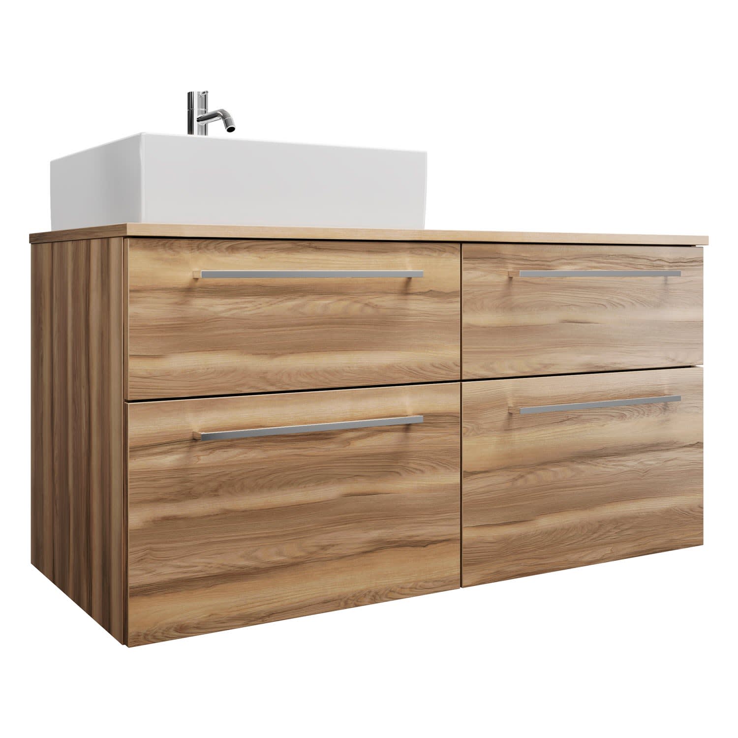 burgbad Eqio Waschtischkombination mit Keramik-Aufsatzwaschtisch 120 cm, links, mit Stangengriff P95