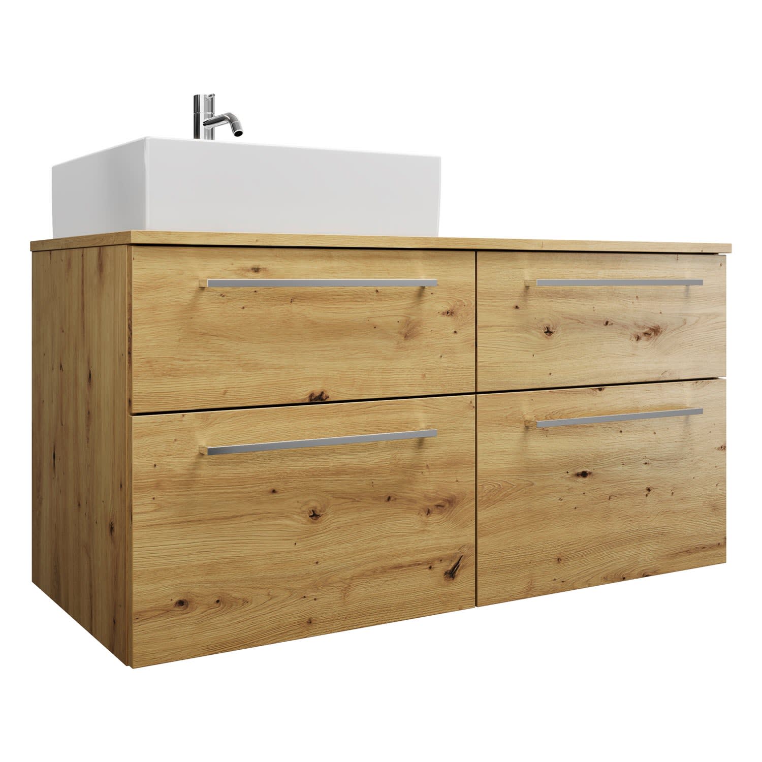 burgbad Eqio Waschtischkombination mit Keramik-Aufsatzwaschtisch 120 cm, links, mit Stangengriff P95