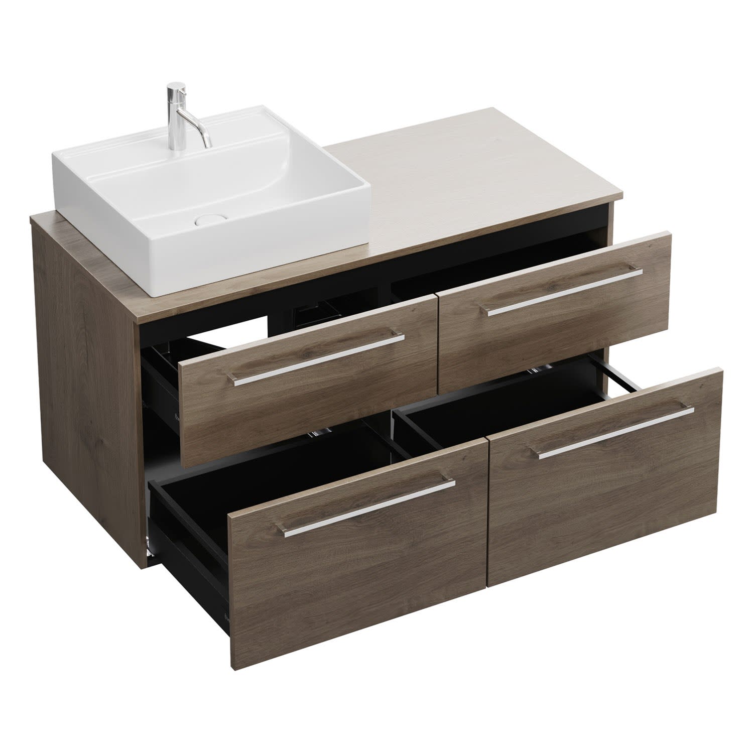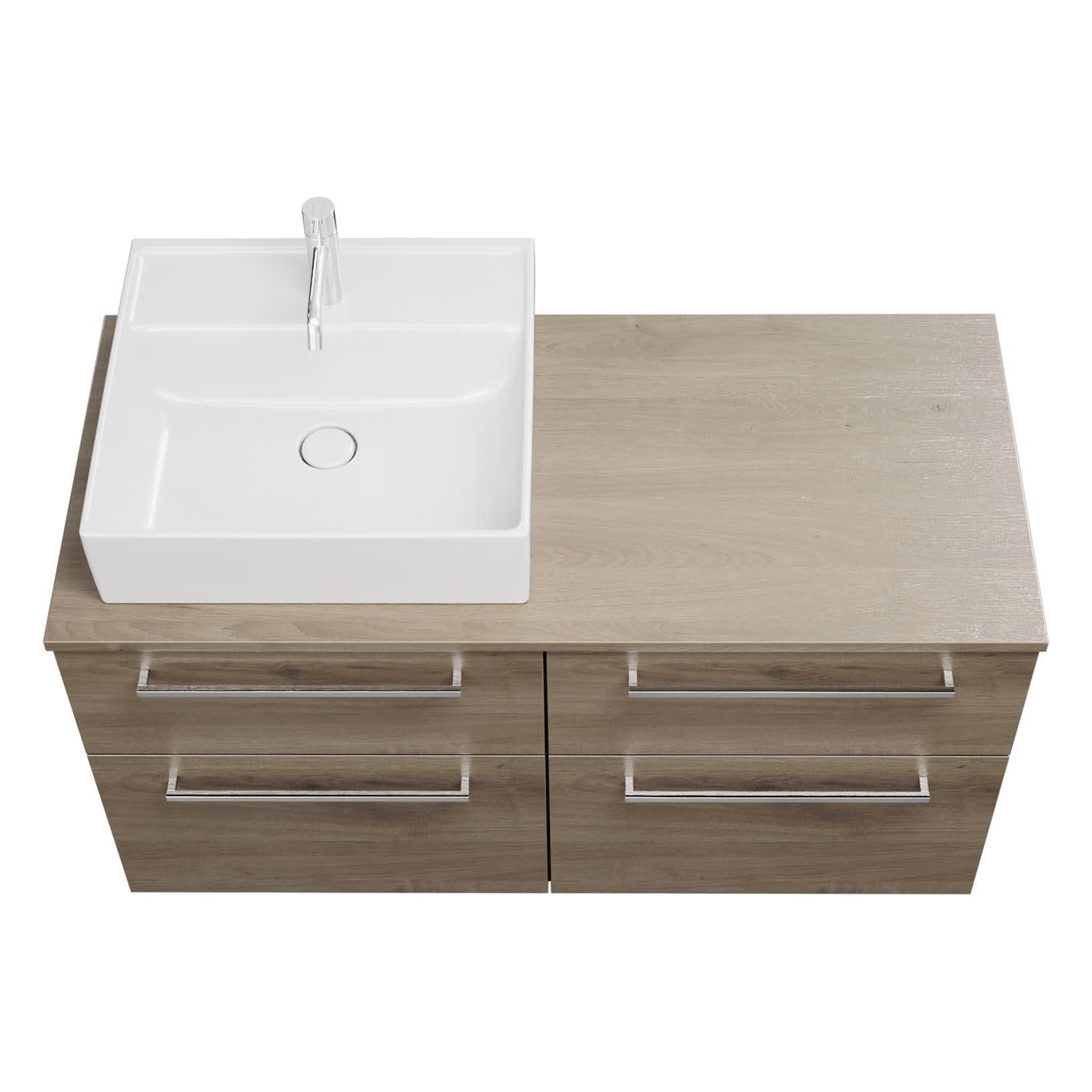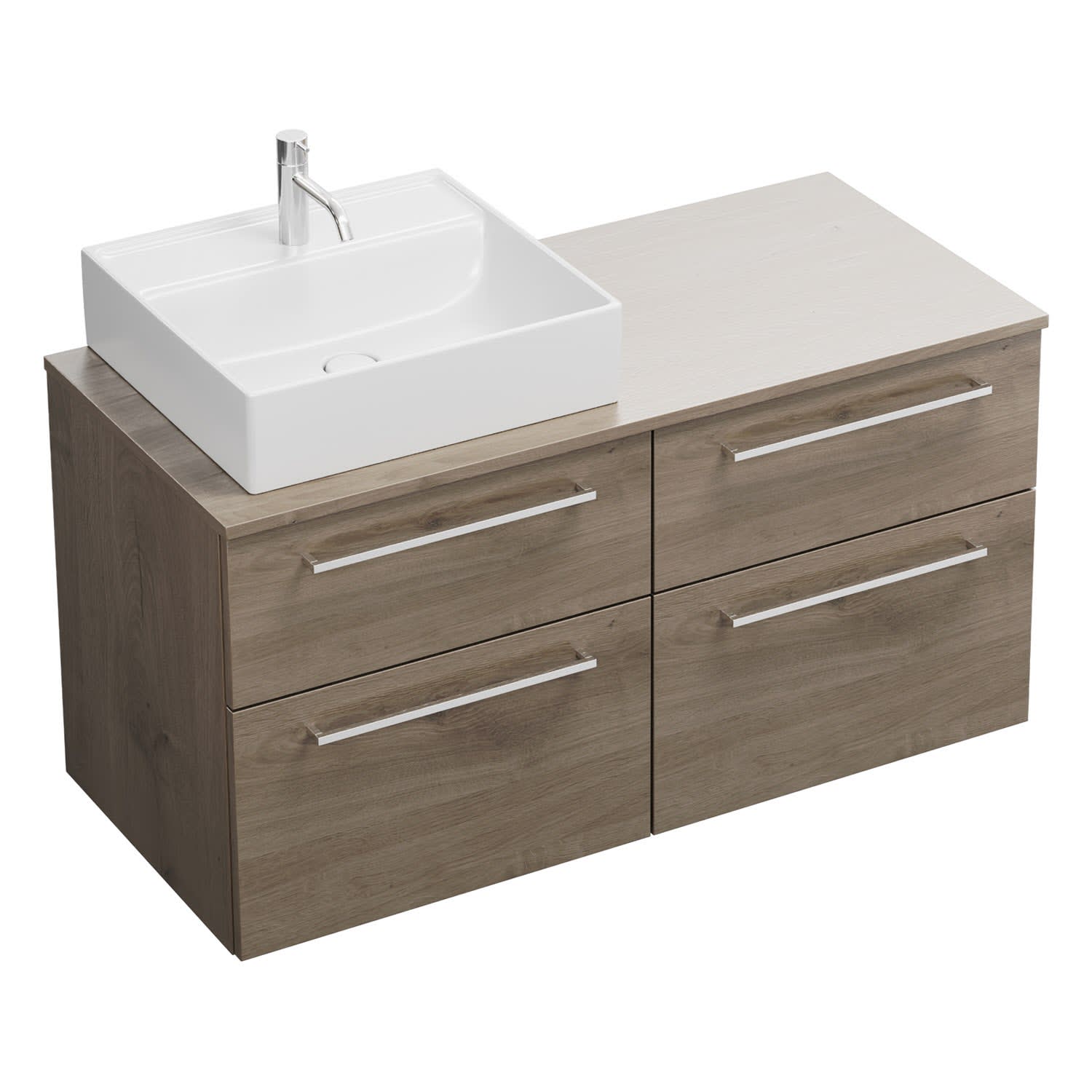 burgbad Eqio Waschtischkombination mit Keramik-Aufsatzwaschtisch 120 cm, links, mit Stangengriff P95