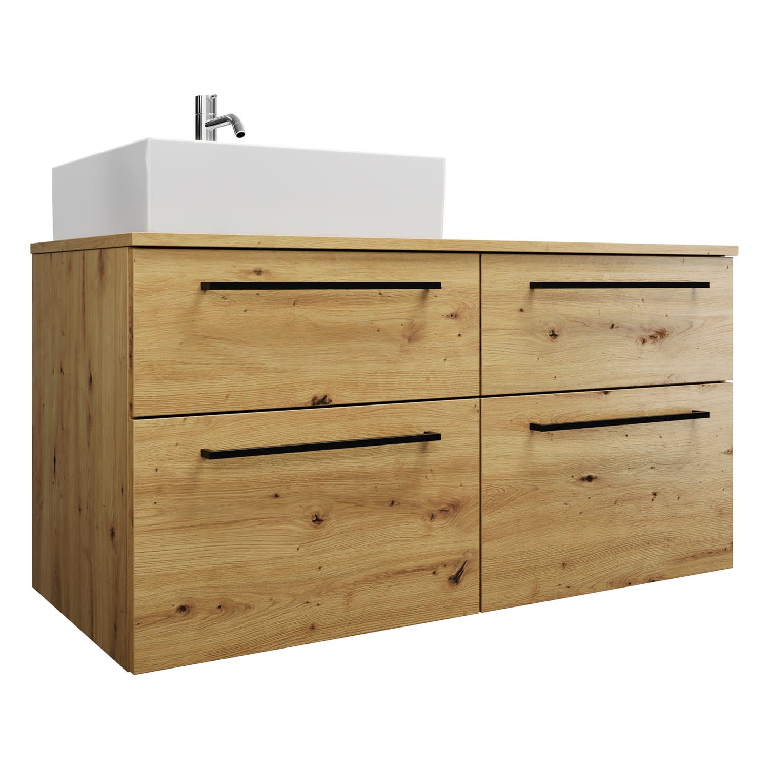 burgbad Eqio Waschtischkombination mit Keramik-Aufsatzwaschtisch 120 cm, links, mit Stangengriff G0234