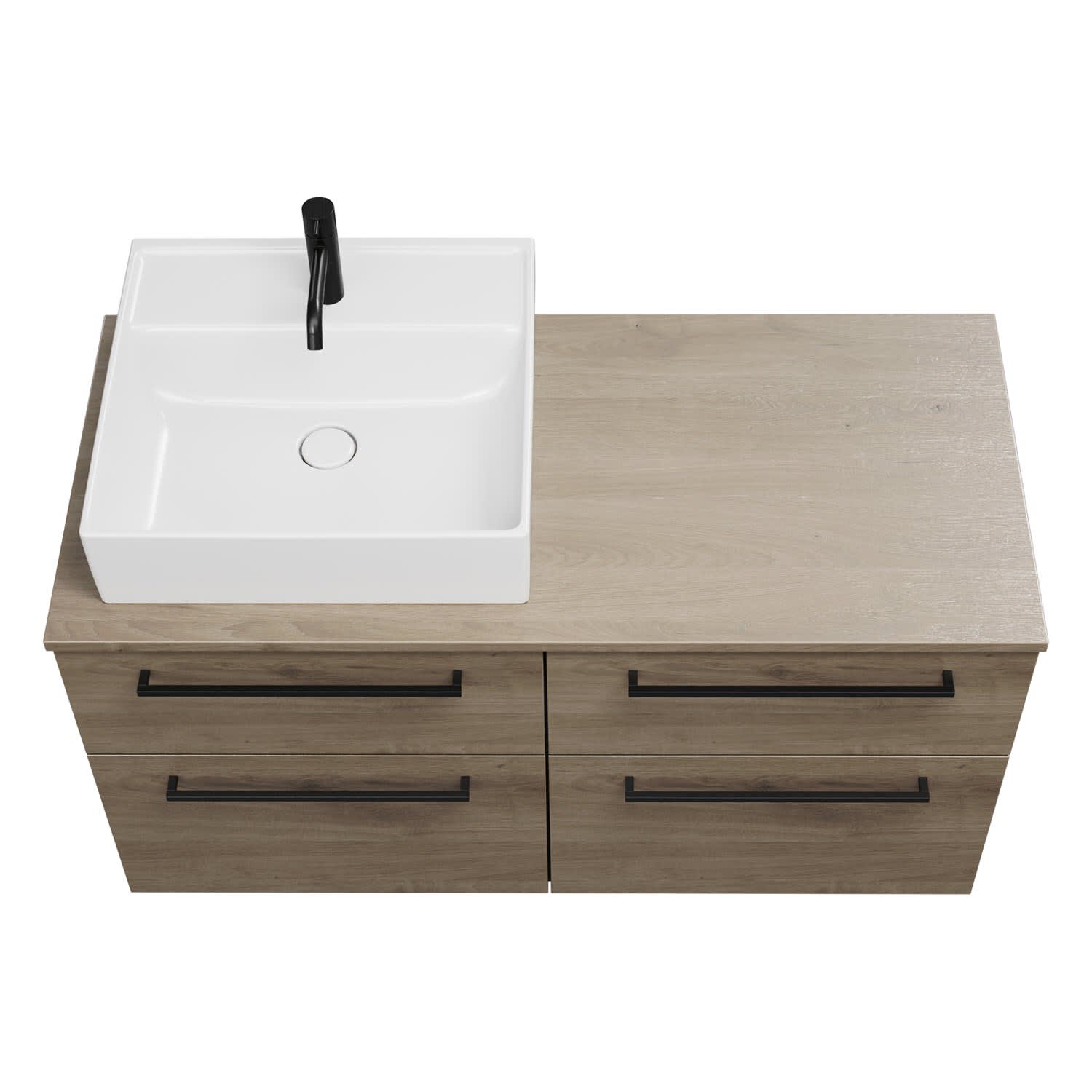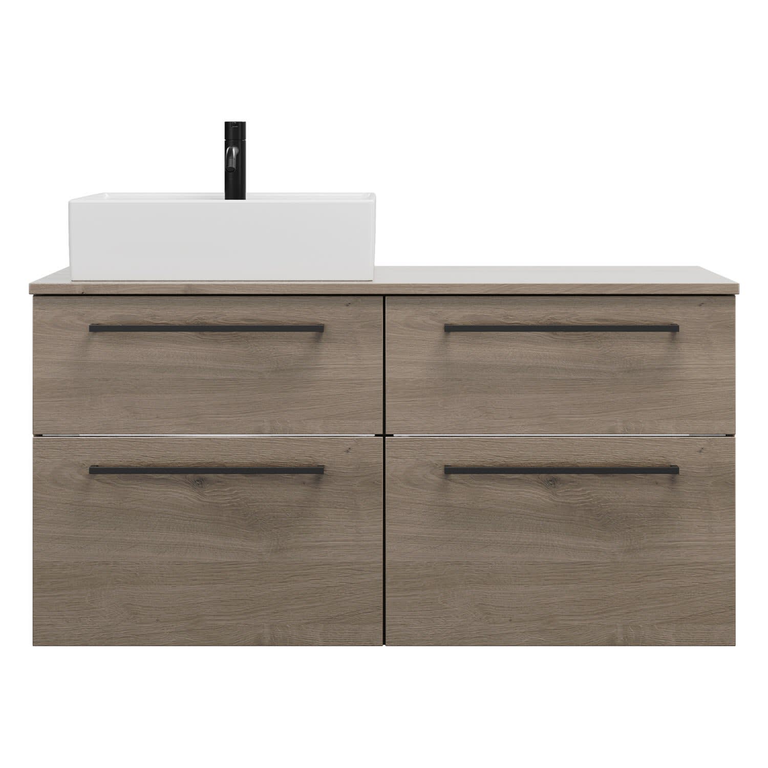 burgbad Eqio Waschtischkombination mit Keramik-Aufsatzwaschtisch 120 cm, links, mit Stangengriff G0234
