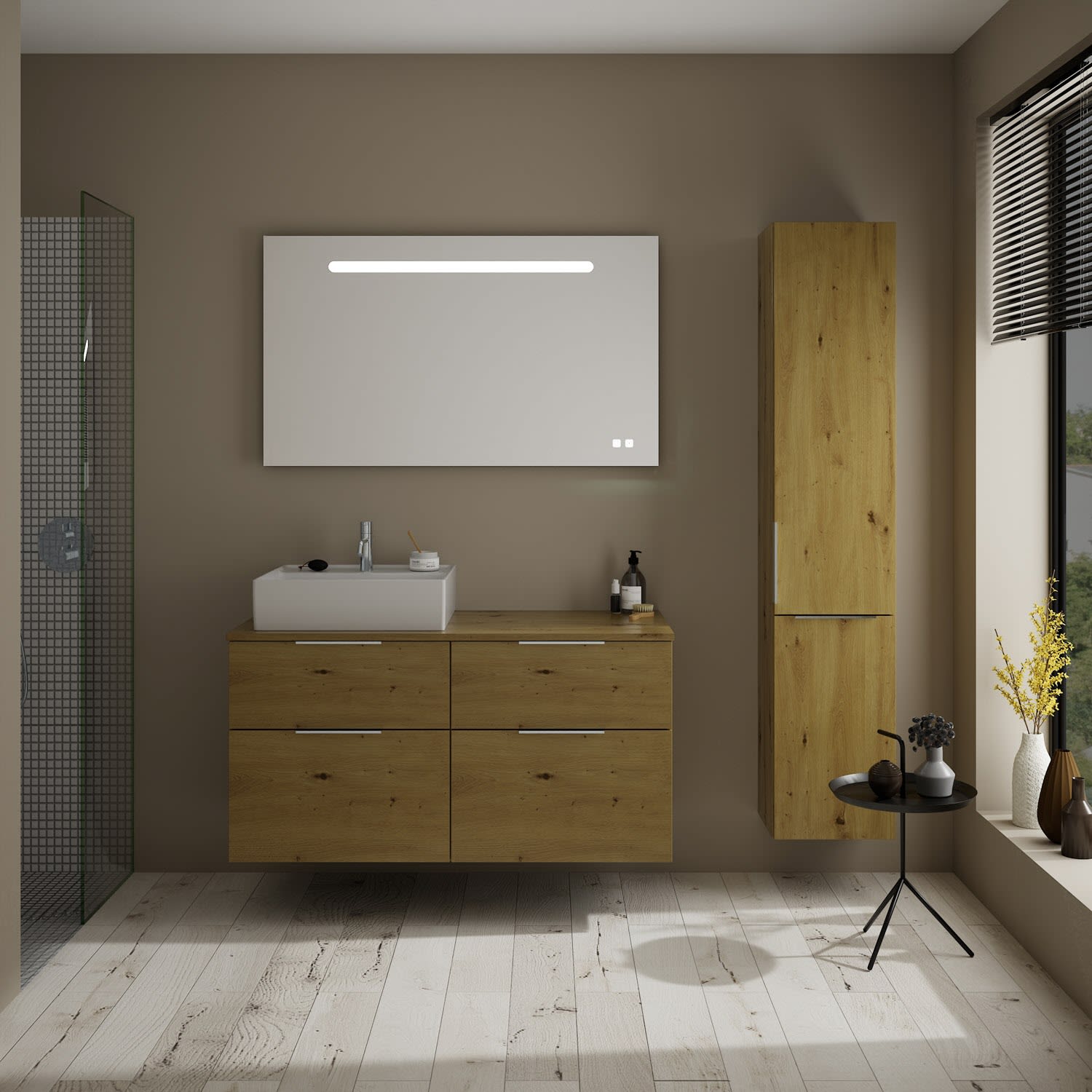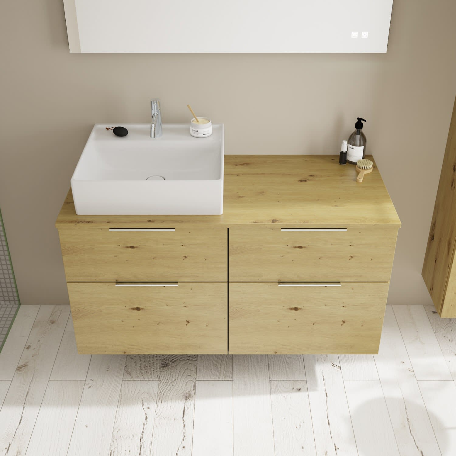 burgbad Eqio Waschtischkombination mit Keramik-Aufsatzwaschtisch 120 cm, links, mit Griff G0146