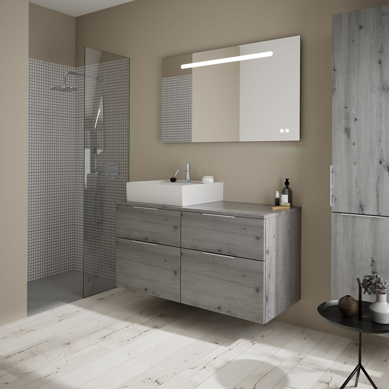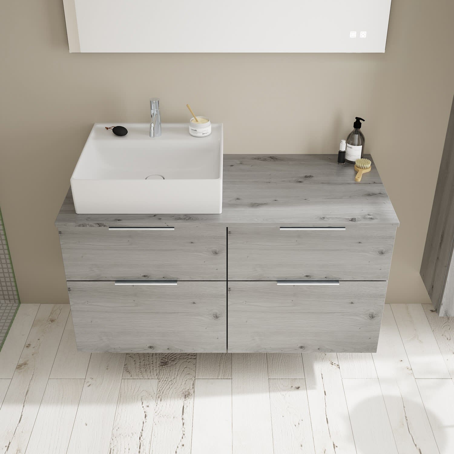 burgbad Eqio Waschtischkombination mit Keramik-Aufsatzwaschtisch 120 cm, links, mit Griff G0146