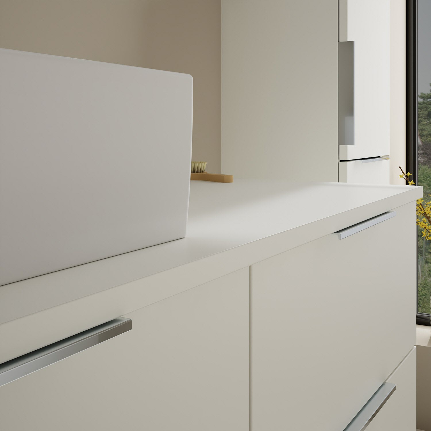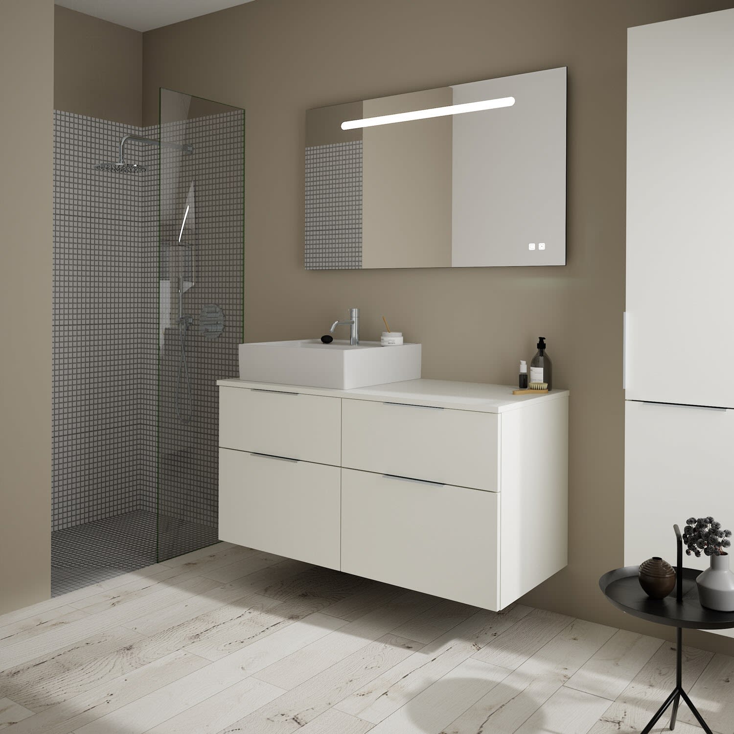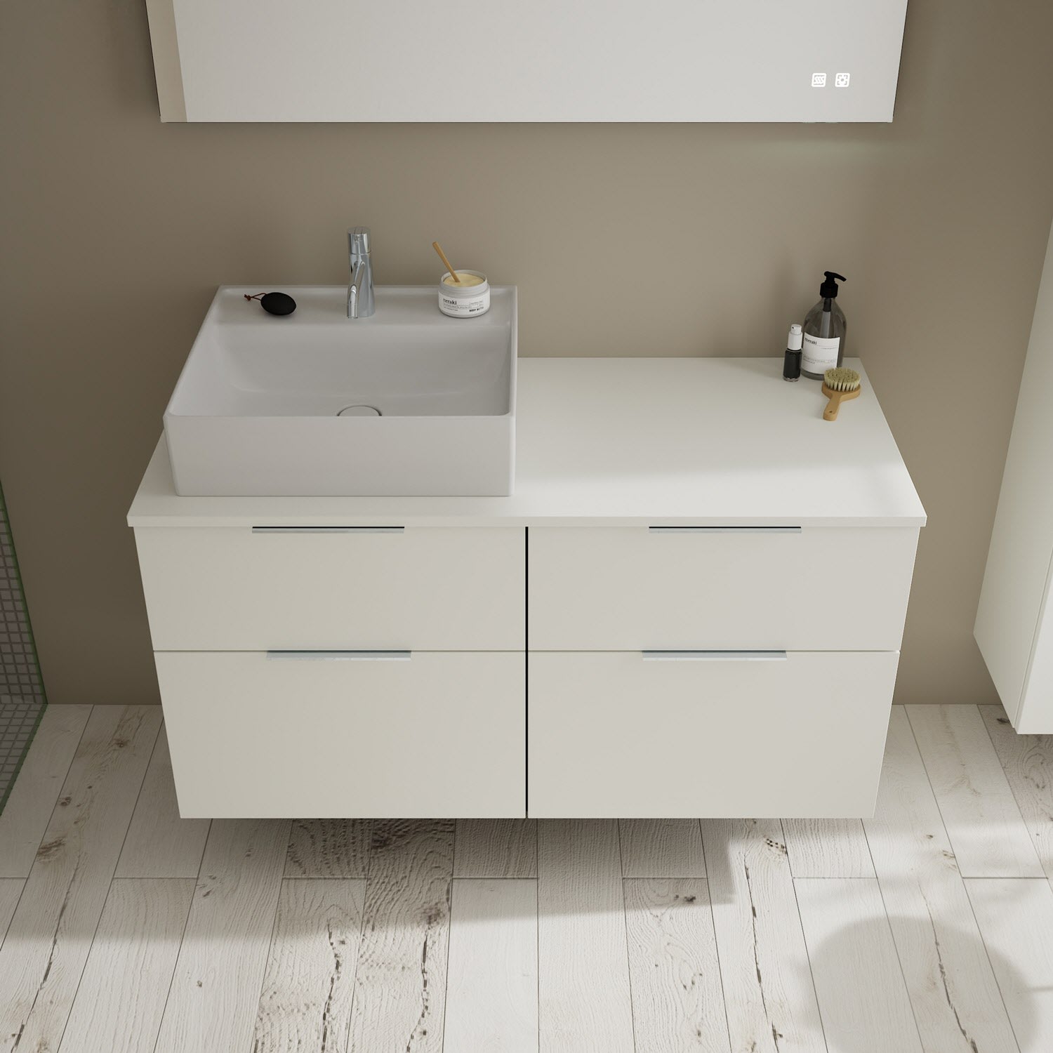 burgbad Eqio Waschtischkombination mit Keramik-Aufsatzwaschtisch 120 cm, links, mit Griff G0146