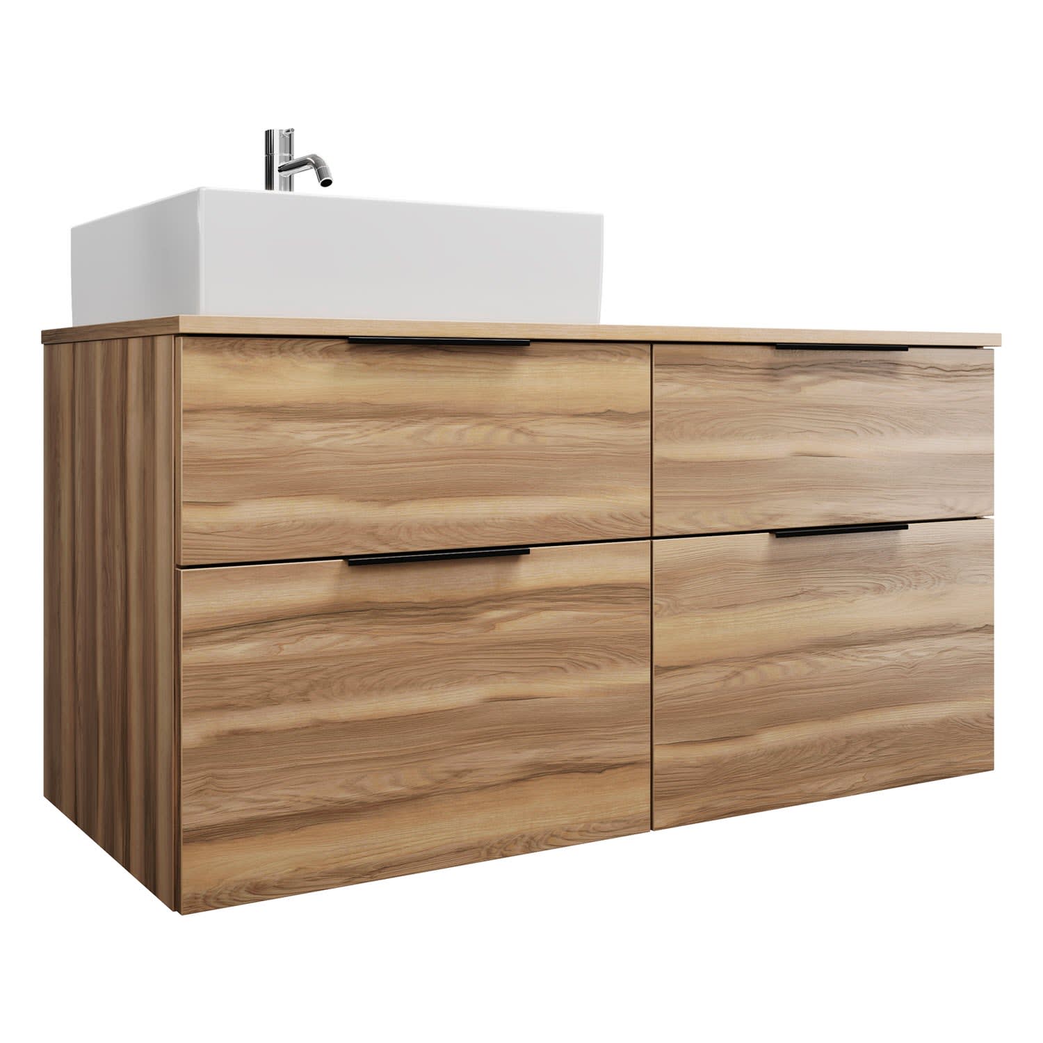 burgbad Eqio Waschtischkombination mit Keramik-Aufsatzwaschtisch 120 cm, links, mit Griff G0200
