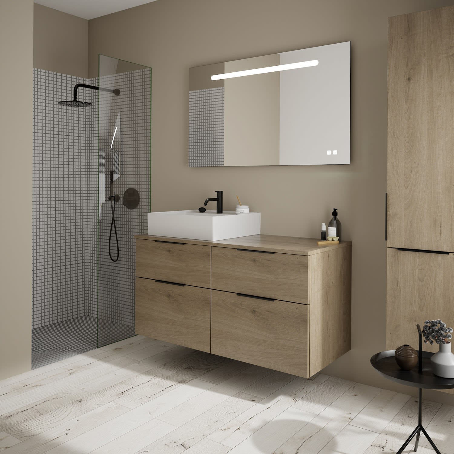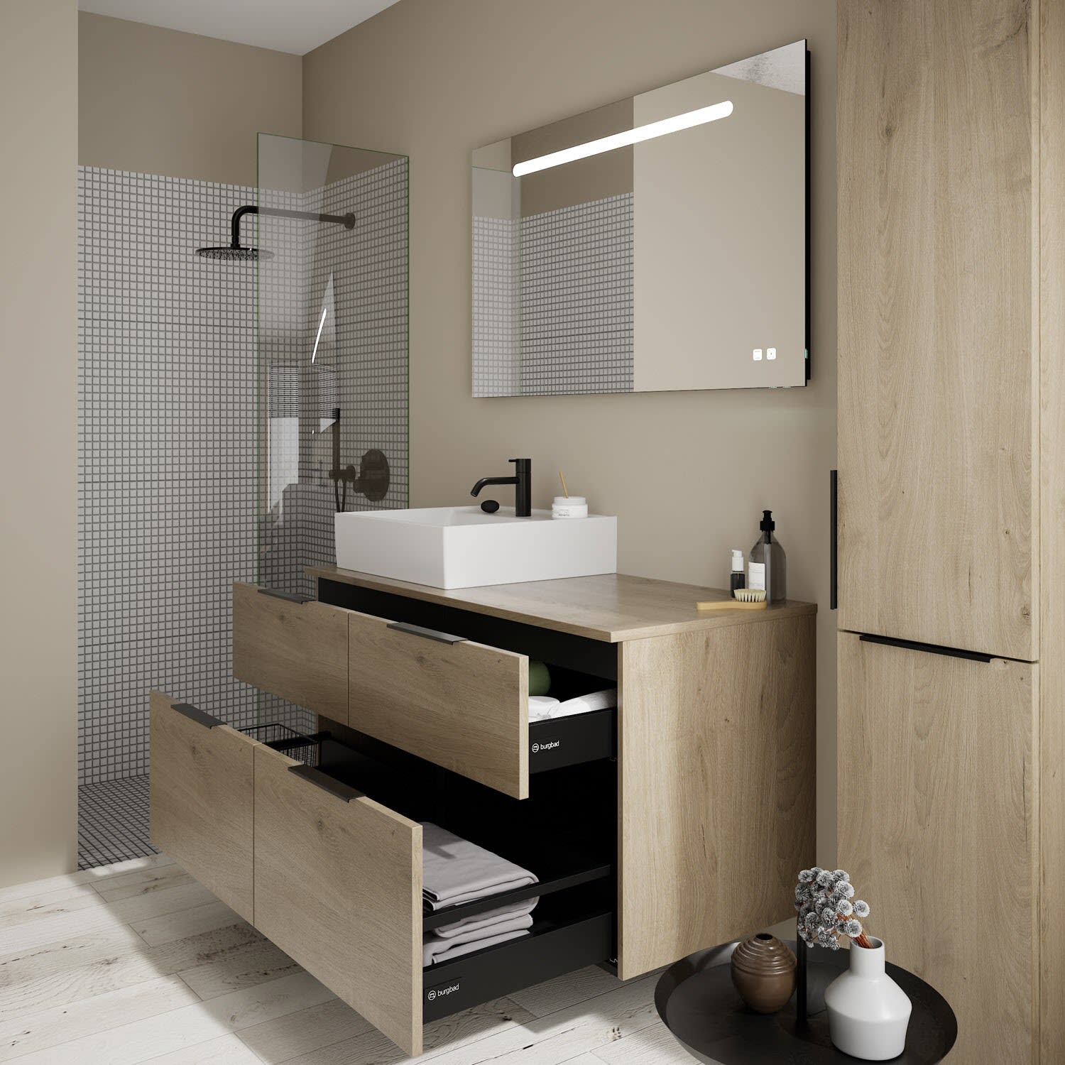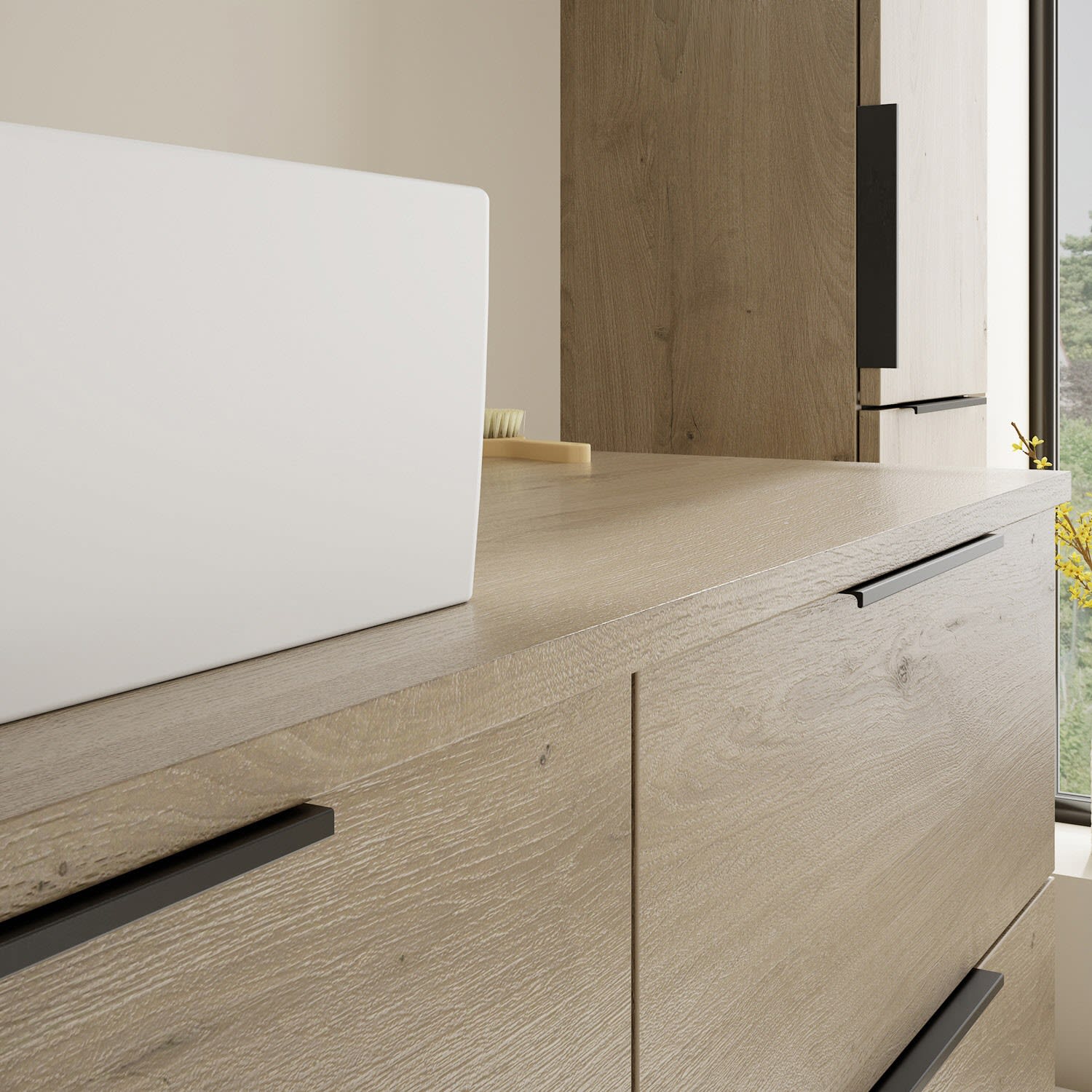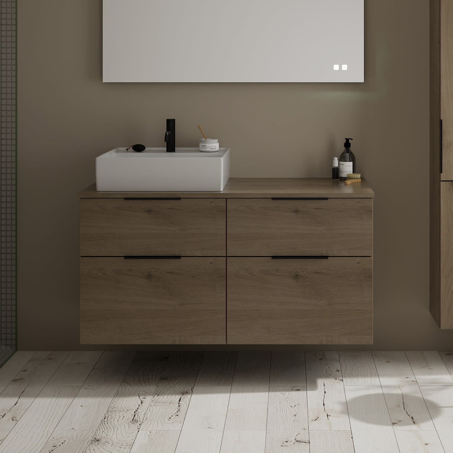 burgbad Eqio Waschtischkombination mit Keramik-Aufsatzwaschtisch 120 cm, links, mit Griff G0200