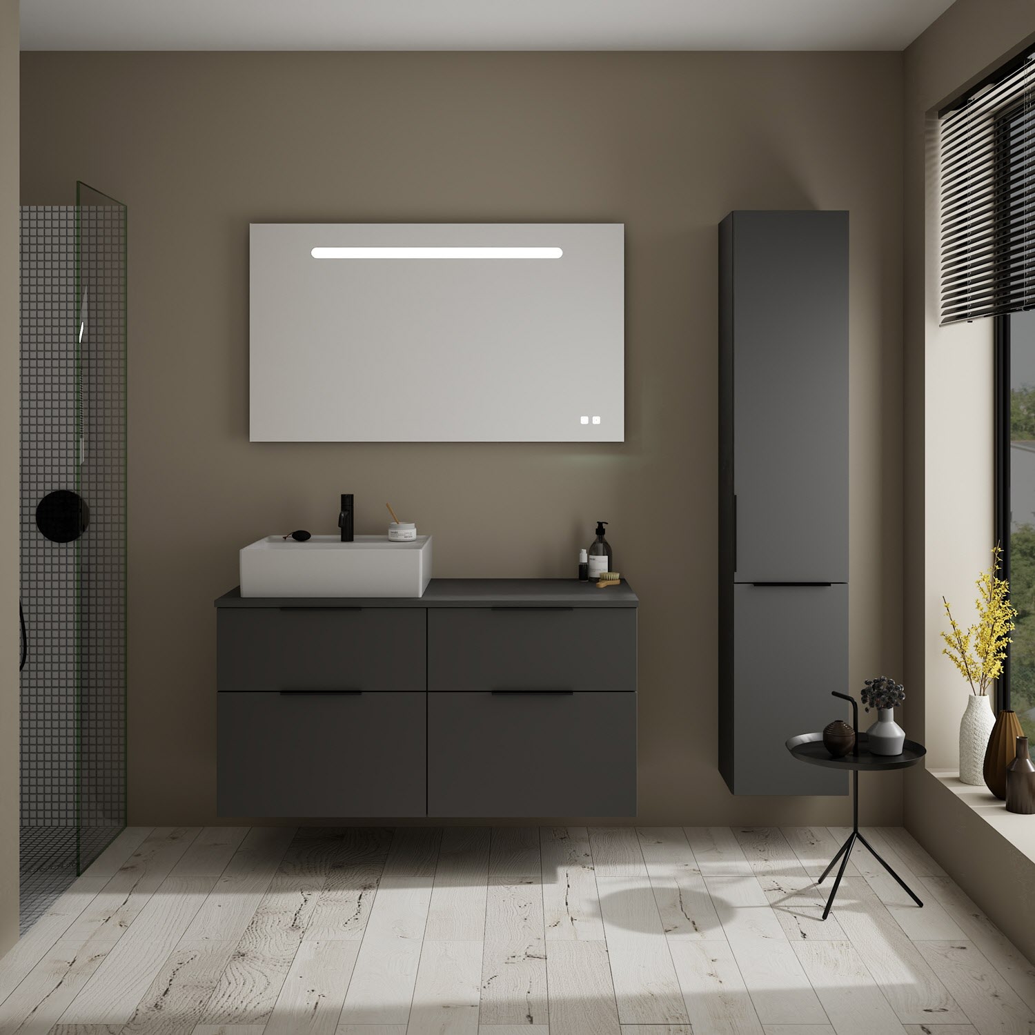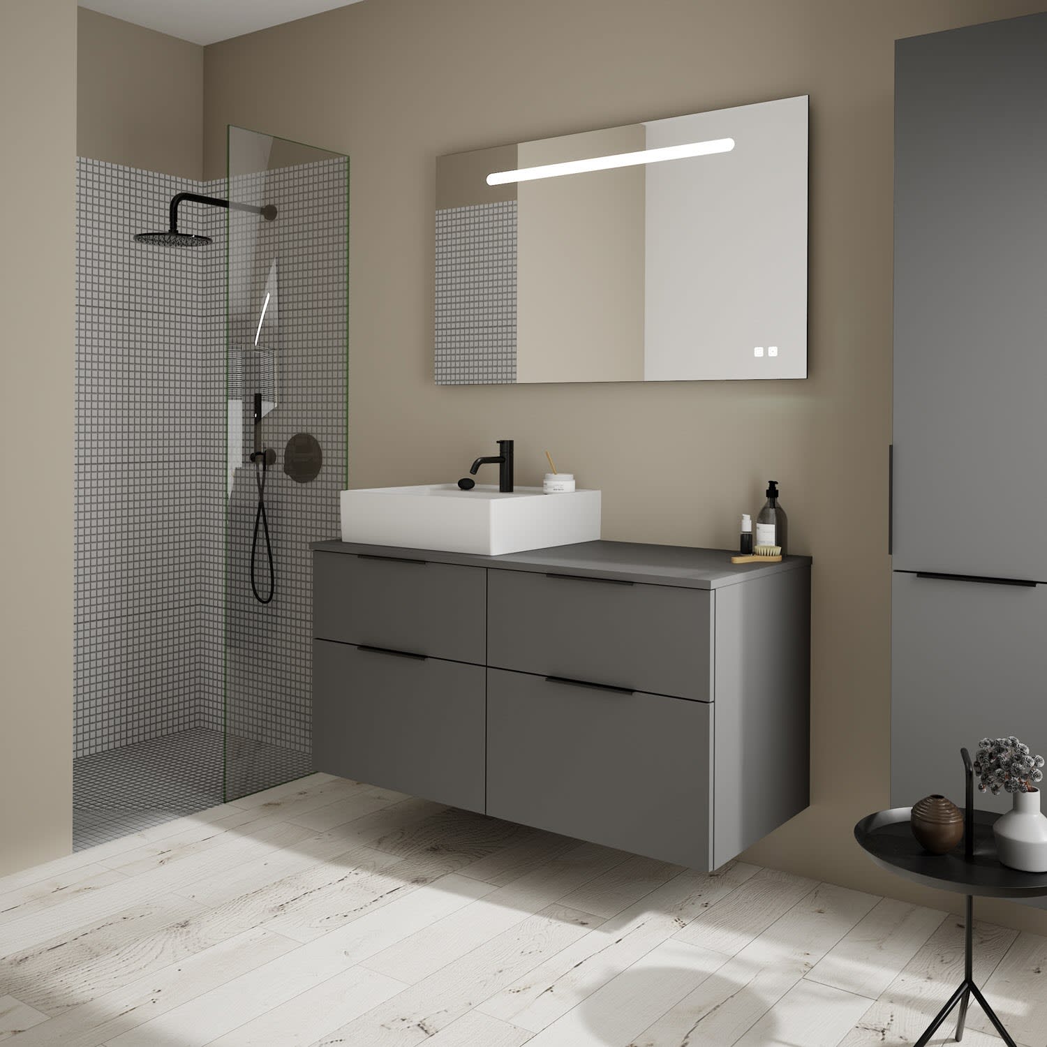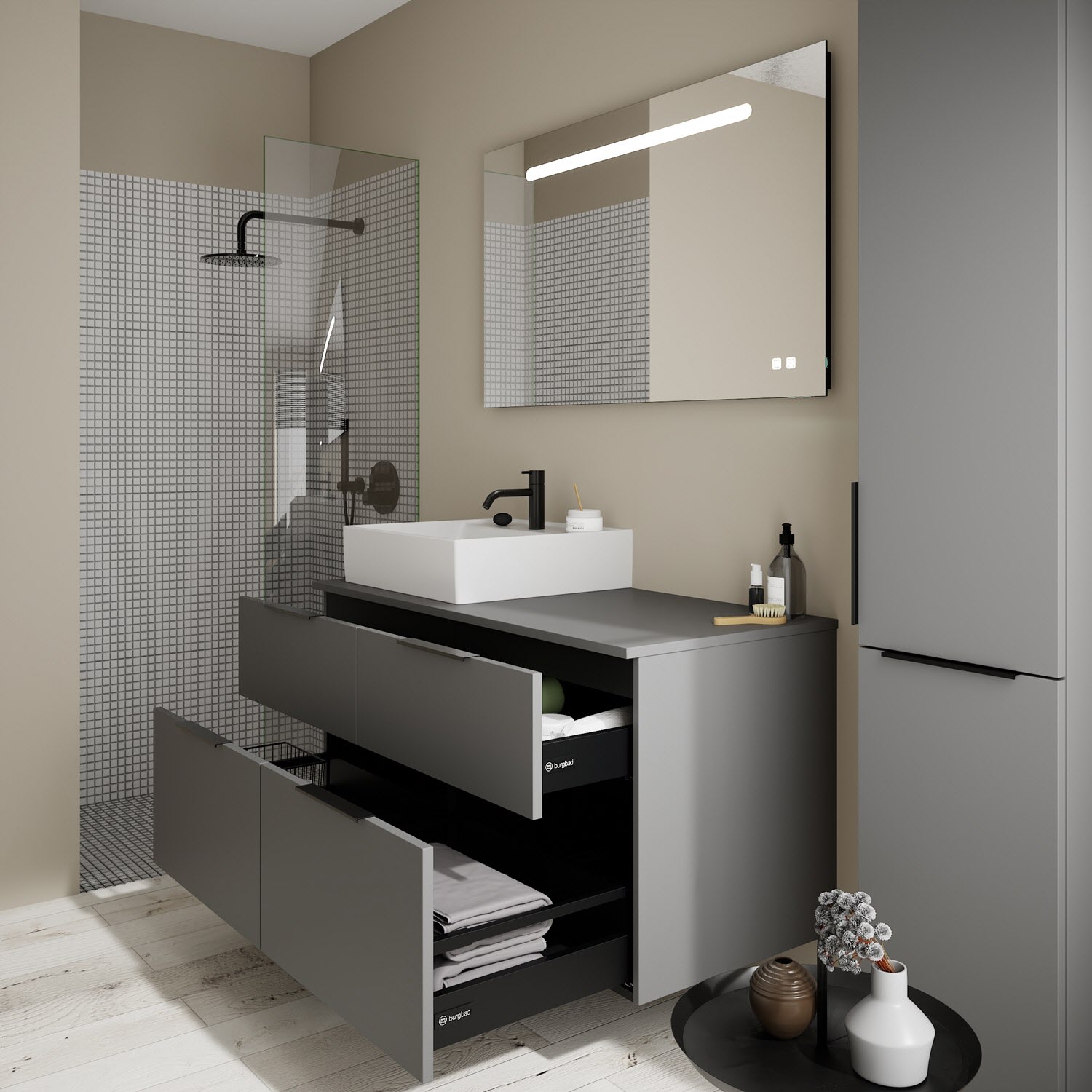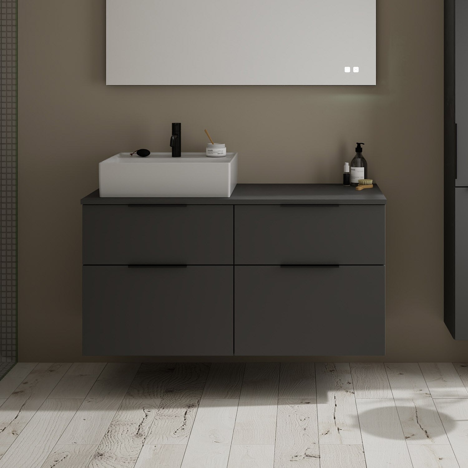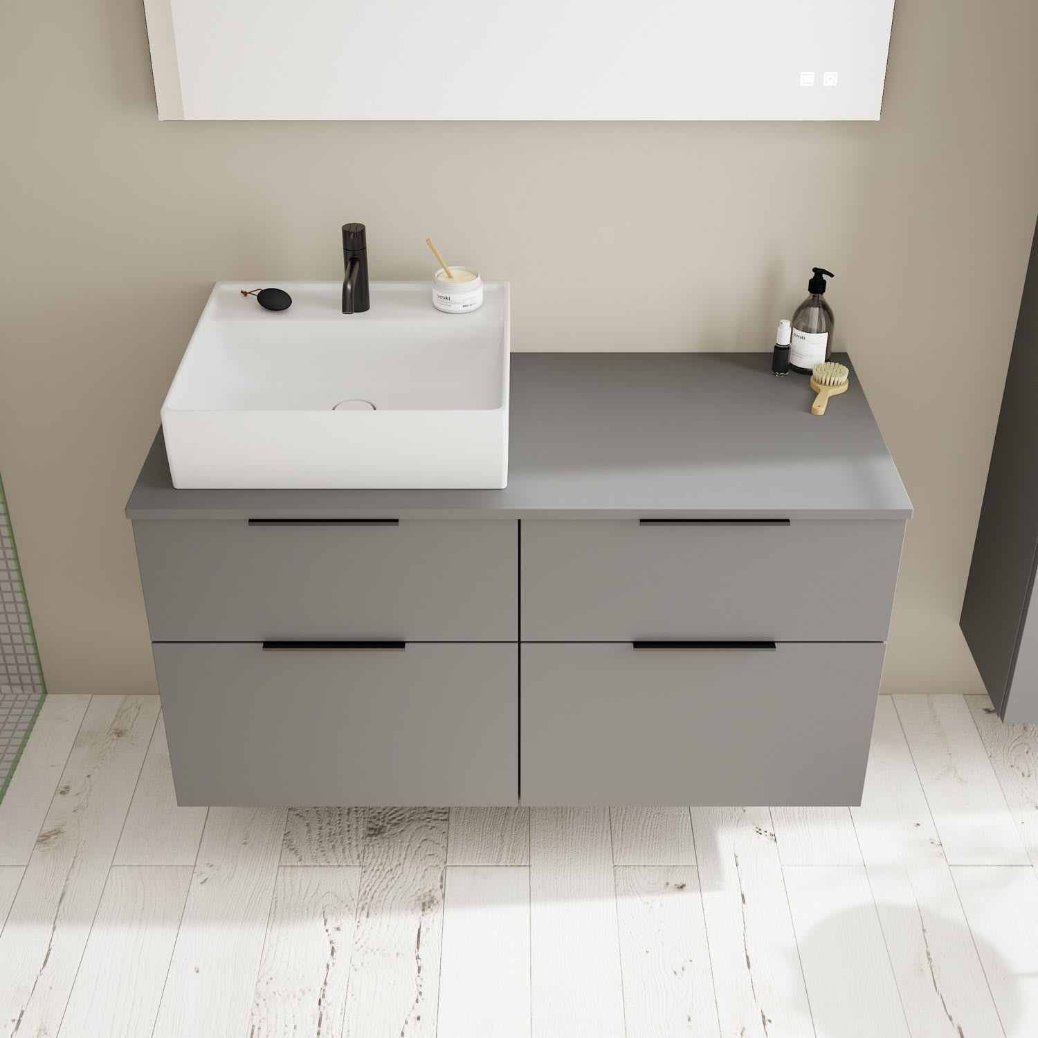 burgbad Eqio Waschtischkombination mit Keramik-Aufsatzwaschtisch 120 cm, links, mit Griff G0200