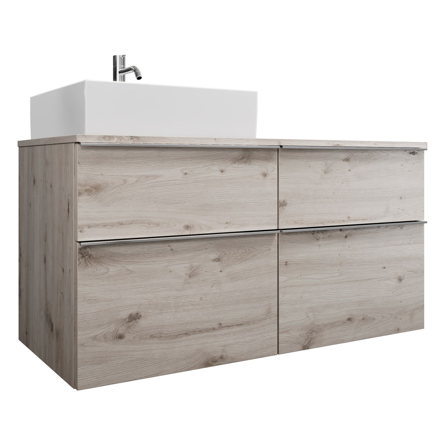 burgbad Eqio Waschtischkombination mit Keramik-Aufsatzwaschtisch 120 cm, links, mit Griffleiste G0251