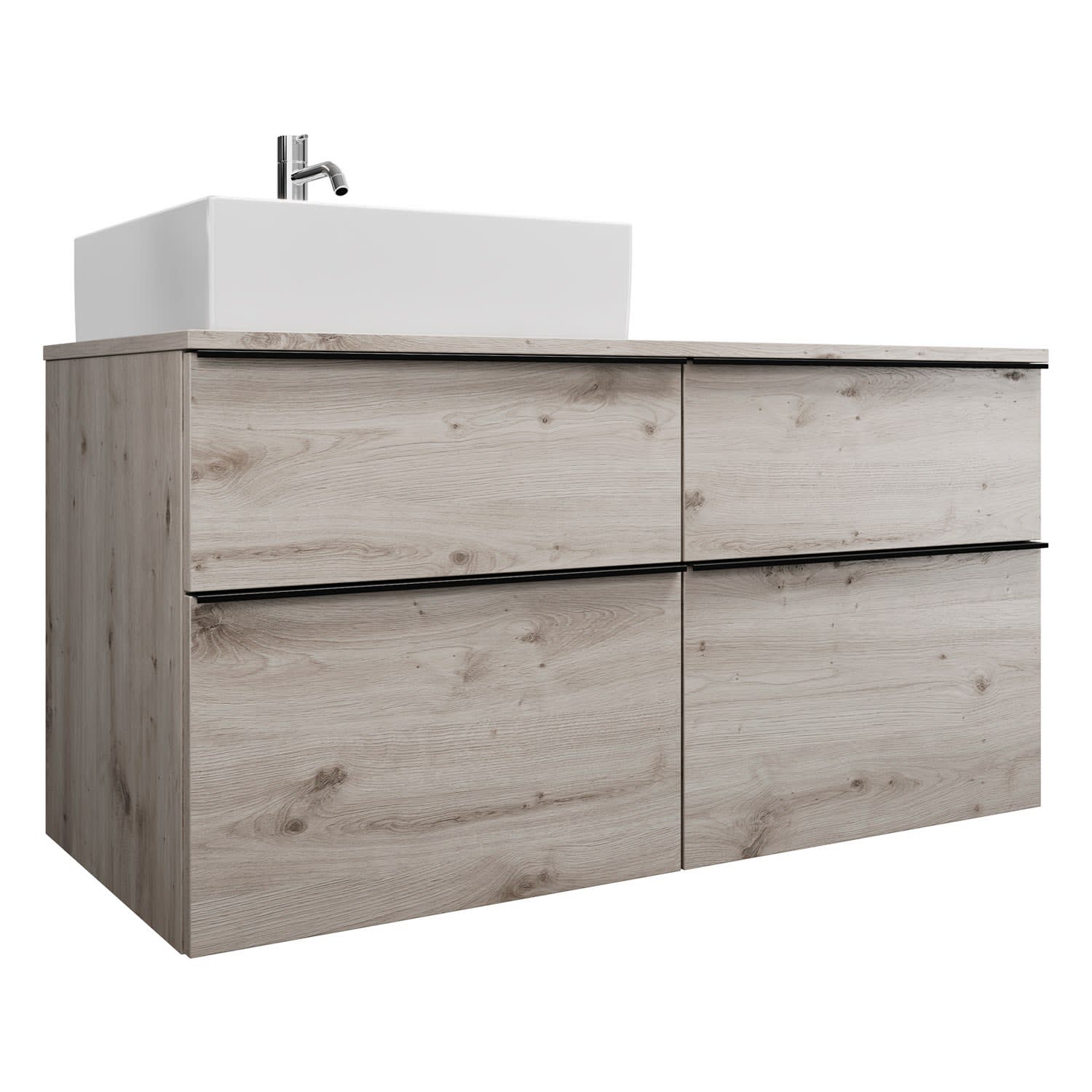 burgbad Eqio Waschtischkombination mit Keramik-Aufsatzwaschtisch 120 cm, links, mit Griffleiste G0252