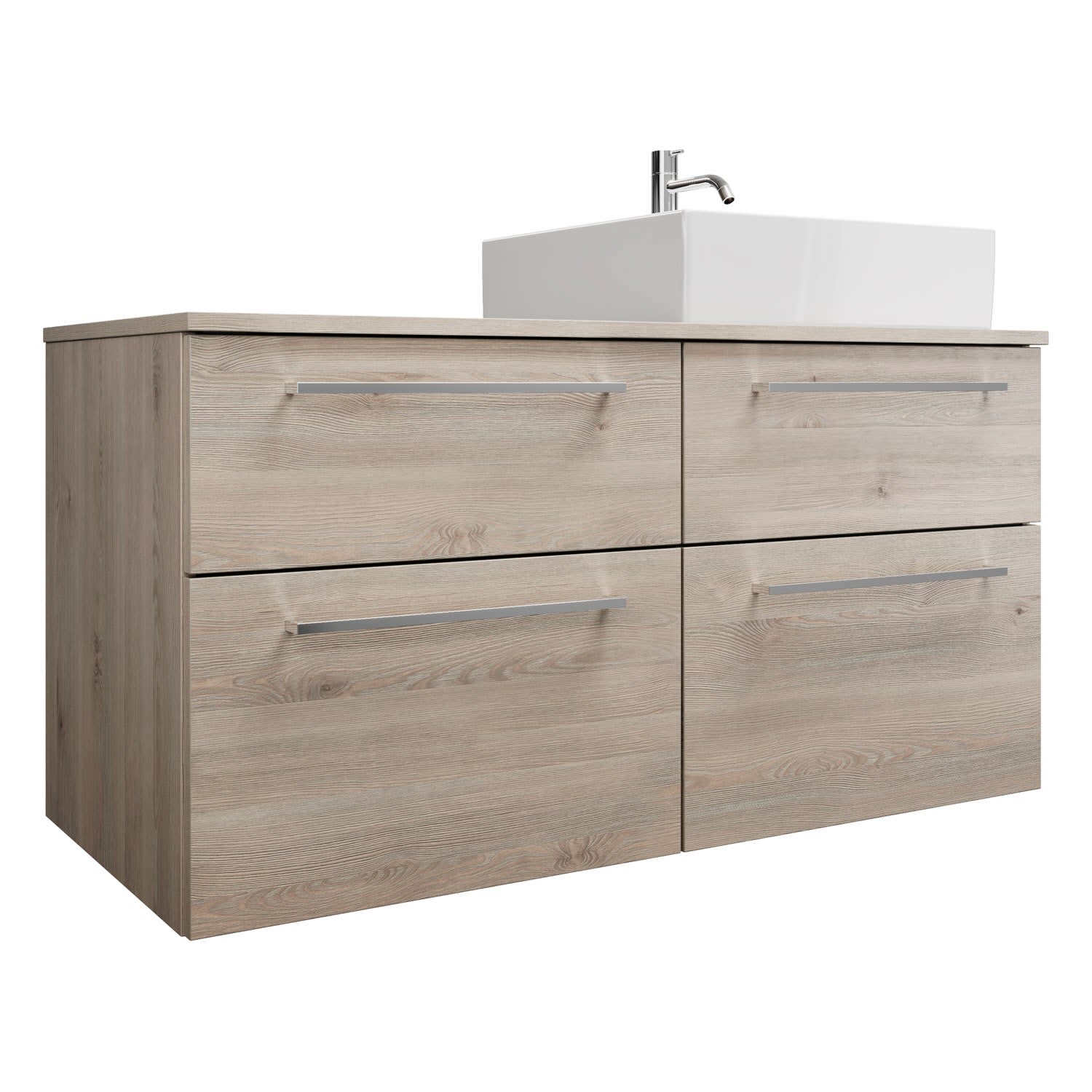 burgbad Eqio Waschtischkombination mit Keramik-Aufsatzwaschtisch 120 cm, rechts, mit Stangengriff P95