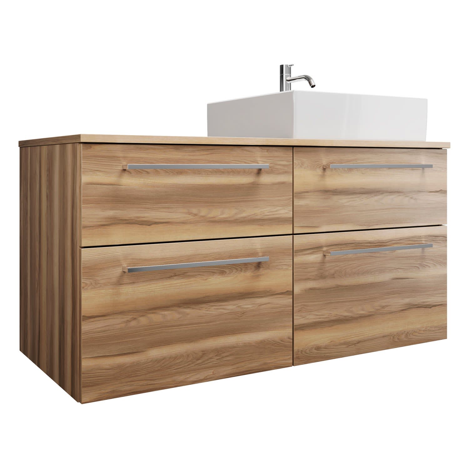 burgbad Eqio Waschtischkombination mit Keramik-Aufsatzwaschtisch 120 cm, rechts, mit Stangengriff P95